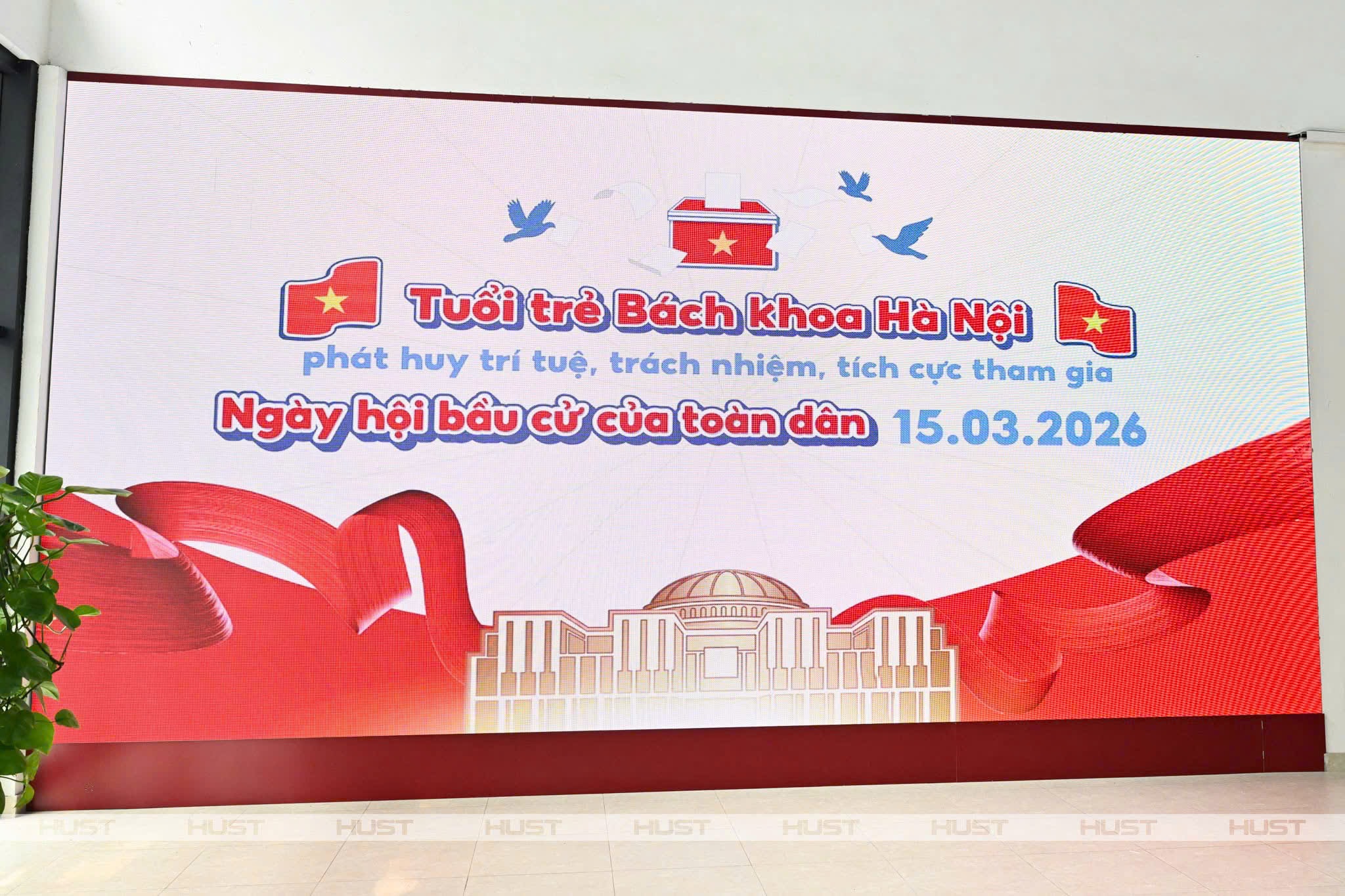 Đại học Bách Khoa Hà Nội đẩy mạnh tuyên truyền, giúp sinh viên hiểu rõ ý nghĩa của ngày bầu cử và trách nhiệm của mình khi tham gia bỏ phiếu. Ảnh: HUST
