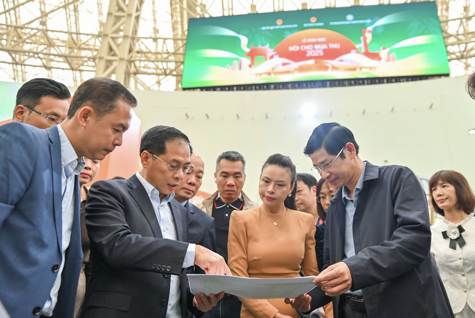 Tại Trung tâm Triển lãm Việt Nam, Phó Thủ tướng Bùi Thanh Sơn đã đến từng gian trưng bày để kiểm tra tiến độ triển khai Hội chợ Mùa Thu 2025, chuẩn bị sẵn sàng cho lễ khai mạc diễn ra vào tối 25/10.
