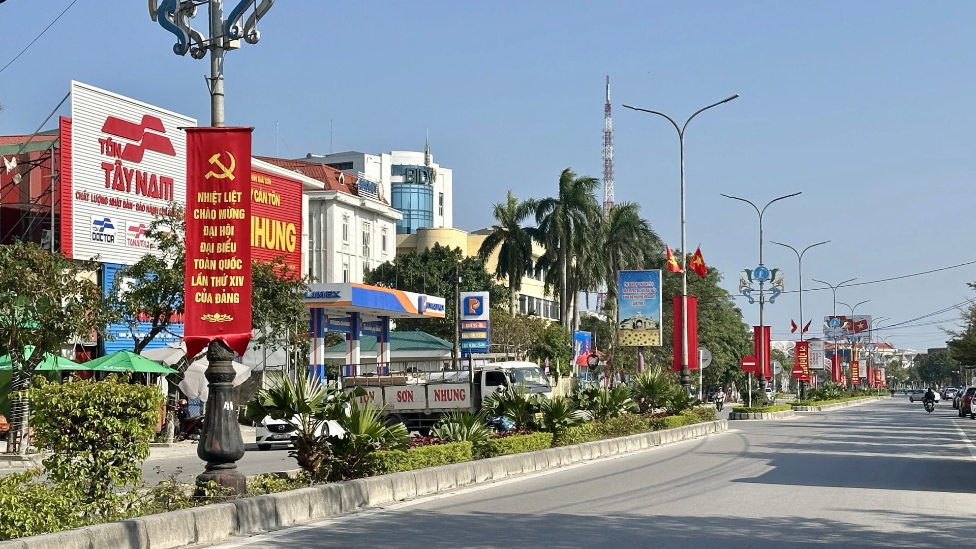 Đường phố rực rỡ cờ hoa, pano chào mừng Đại hội đại biểu toàn quốc lần thứ XIV của Đảng.