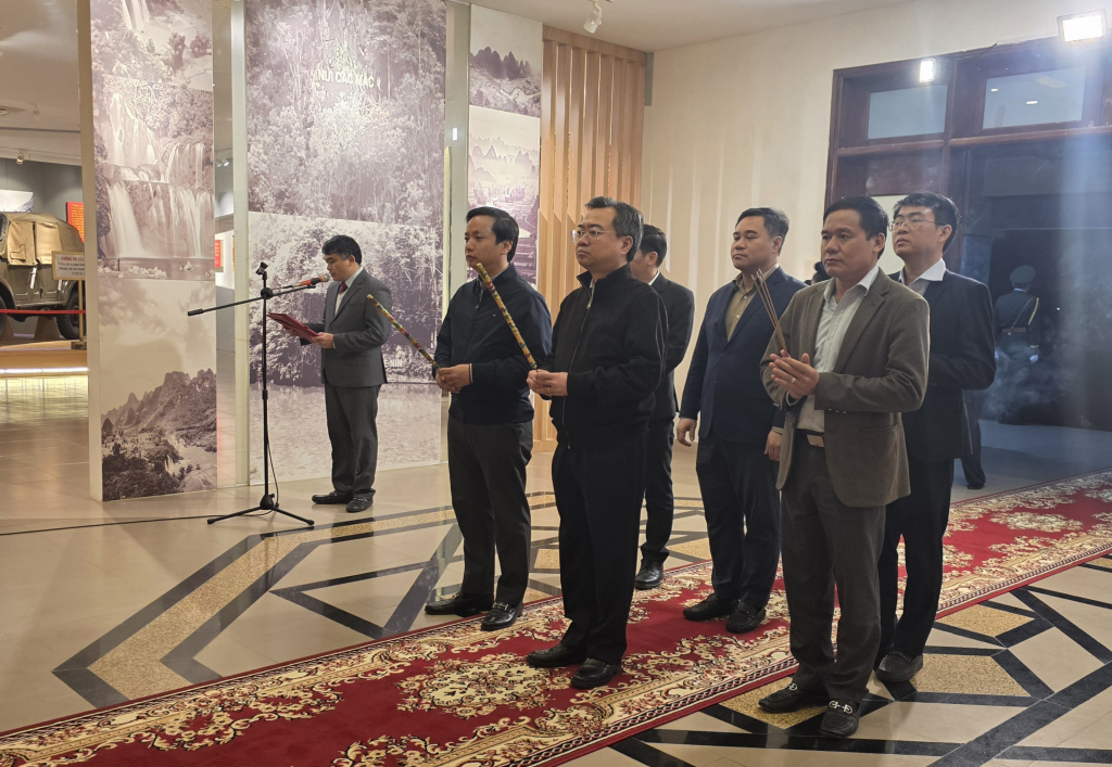 Trưởng Ban Chính sách, chiến lược Trung ương Nguyễn Thanh Nghị và đoàn đại biểu dâng hương Đền thờ Chủ tịch Hồ Chí Minh tại Khu di tích Quốc gia đặc biệt Pác Bó.
