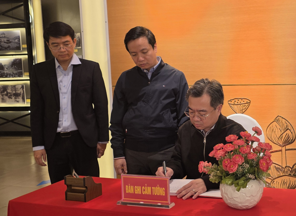Sau nghi lễ dâng hoa, dâng hương, đoàn công tác tham quan Nhà trưng bày tại Khu di tích Quốc gia đặc biệt Pác Bó.