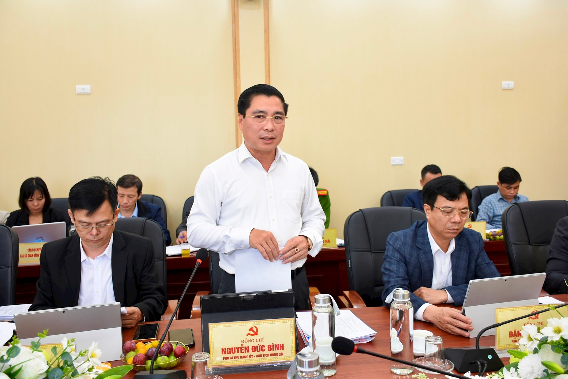 Lãnh đạo xã Ứng Hòa phát biểu ý kiến tại hội nghị. Ảnh: Sơn Tùng
