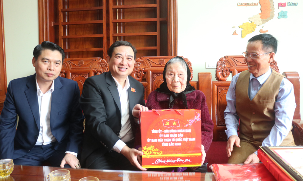 Đồng chí Trưởng Ban Nội chính Tỉnh ủy đến thăm, tặng quà và mừng thọ cụ Nguyễn Thị Lịch tròn 100 tuổi ở thôn Bằng Lục. Cụ Lịch có con trai là liệt sỹ Nguyễn Mạnh Tăng, hy sinh năm 1979 tại chiến trường Campuchia.
