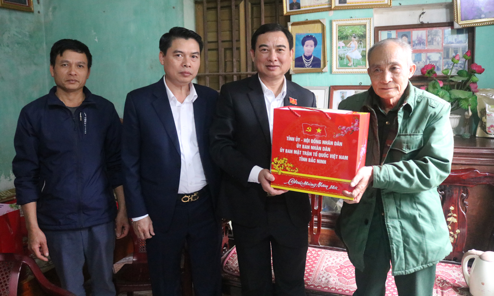 Đồng chí Vũ Trí Hải thăm, tặng quà thương binh Nguyễn Văn Bình ở thôn Lạc Nhuế, xã Tam Đa.