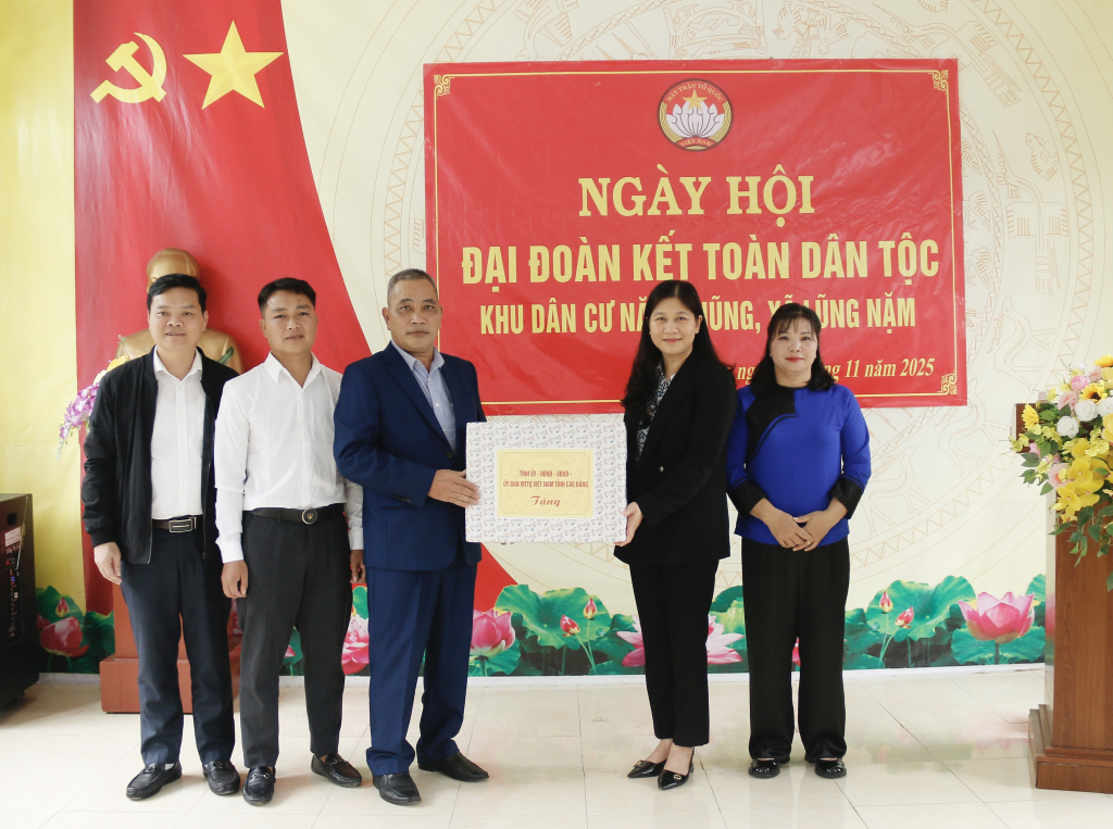 Nhân dịp này, đoàn công tác tặng quà của Tỉnh ủy, HĐND, UBND, Ủy ban Mặt trận Tổ quốc tỉnh cho xóm Nặm Nhũng; tặng quà cho người có uy tín và 16 hộ gia đình có hoàn cảnh khó khăn của xóm.