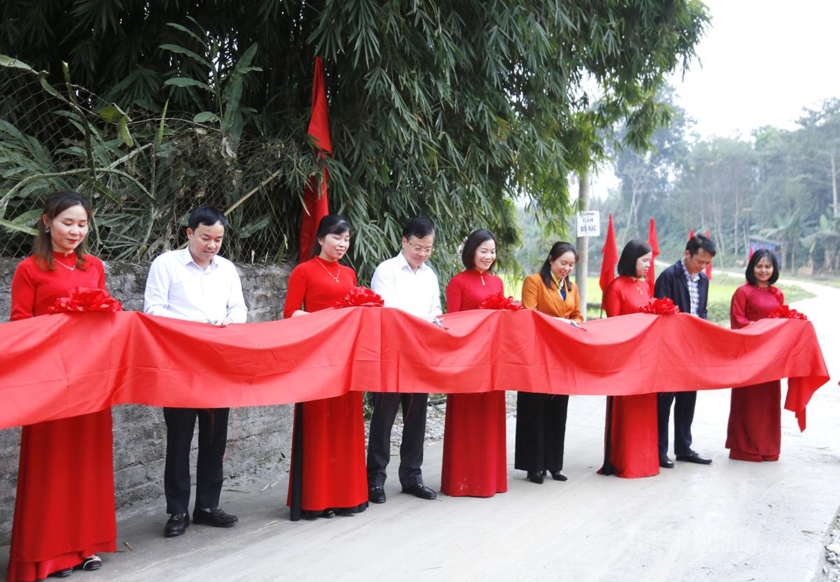 Đồng chí Trần Quang Minh và các đại biểu cắt băng khánh thành cầu dân sinh ở xã Hùng An.