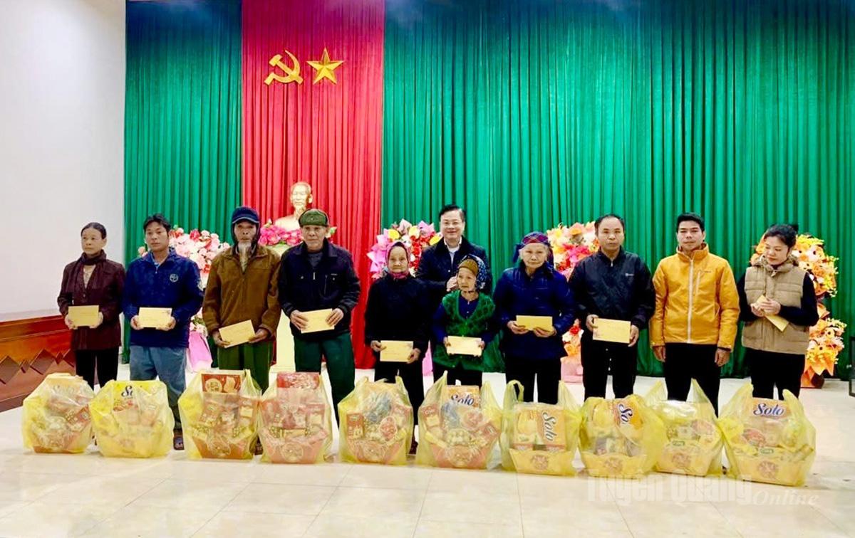 Đồng chí Trần Quang Minh, Ủy viên Ban Thường vụ Tỉnh ủy, Trưởng Ban Tổ chức Tỉnh ủy trao quà Tết cho người cao tuổi.
