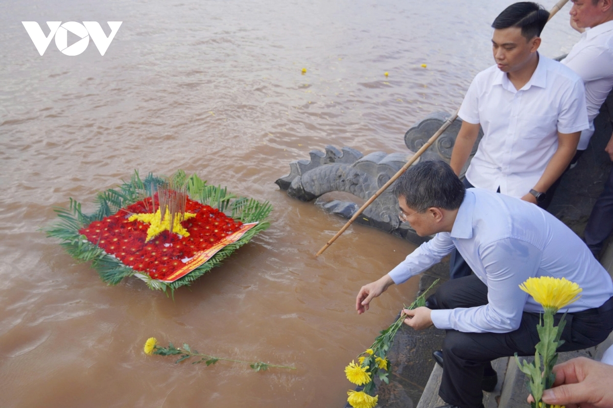 Ủy viên Bộ Chính trị, Bí thư Trung ương Đảng, Trưởng Ban Tổ chức Trung ương thả hoa tri ân liệt sĩ trên sông Thạch Hãn