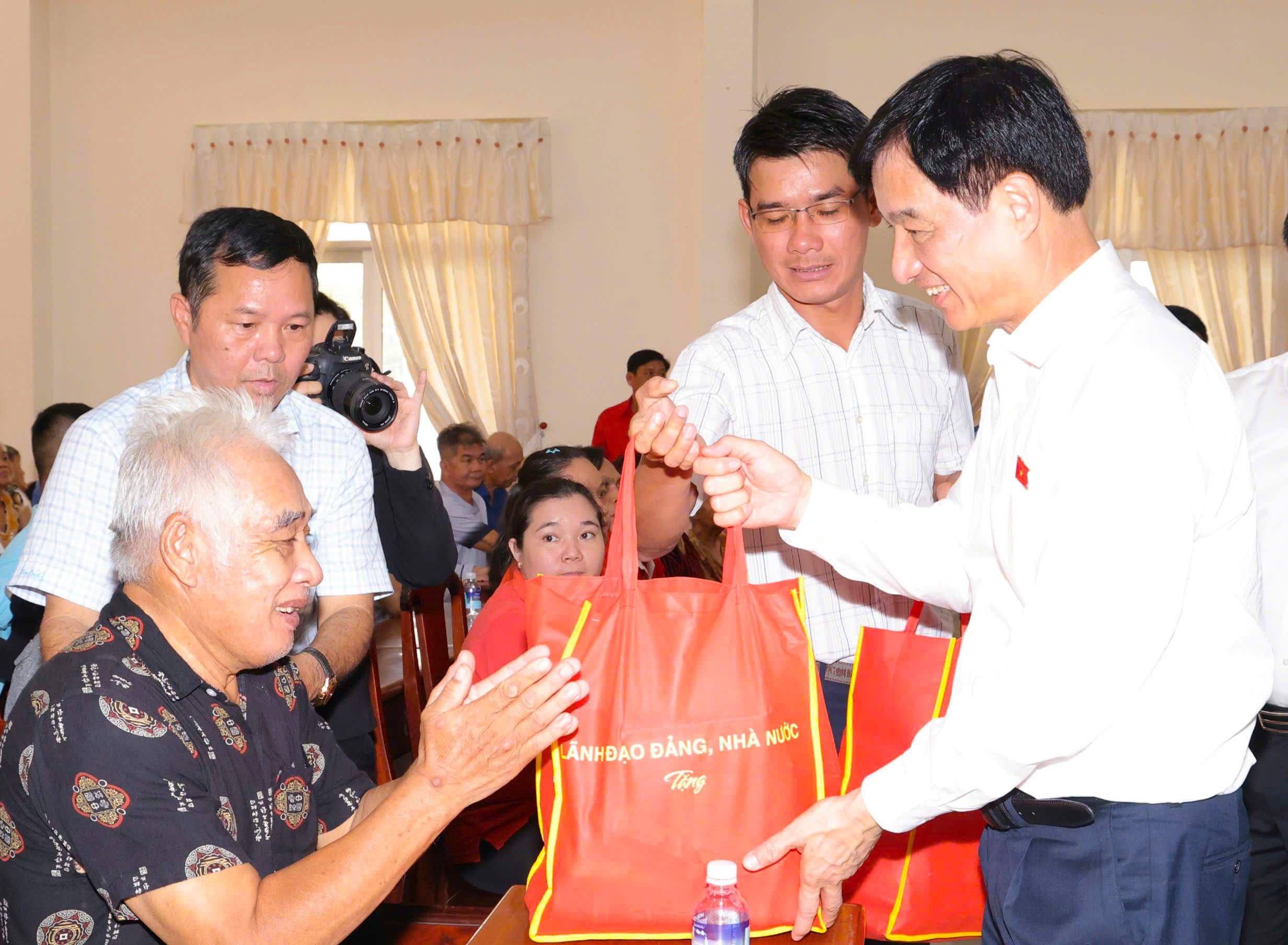 Trưởng Ban Tổ chức Trung ương Nguyễn Duy Ngọc tặng quà cho các gia đình chính sách