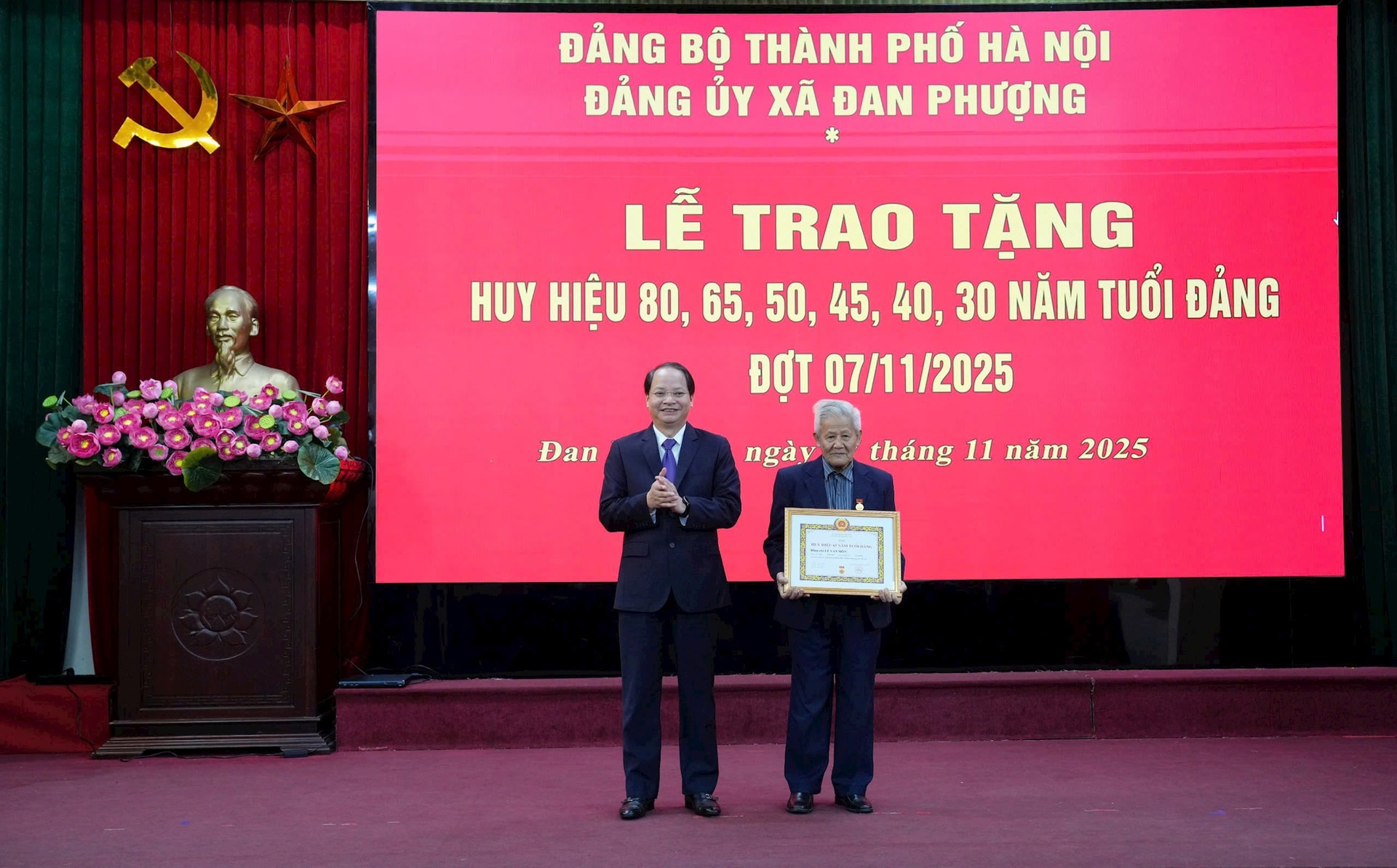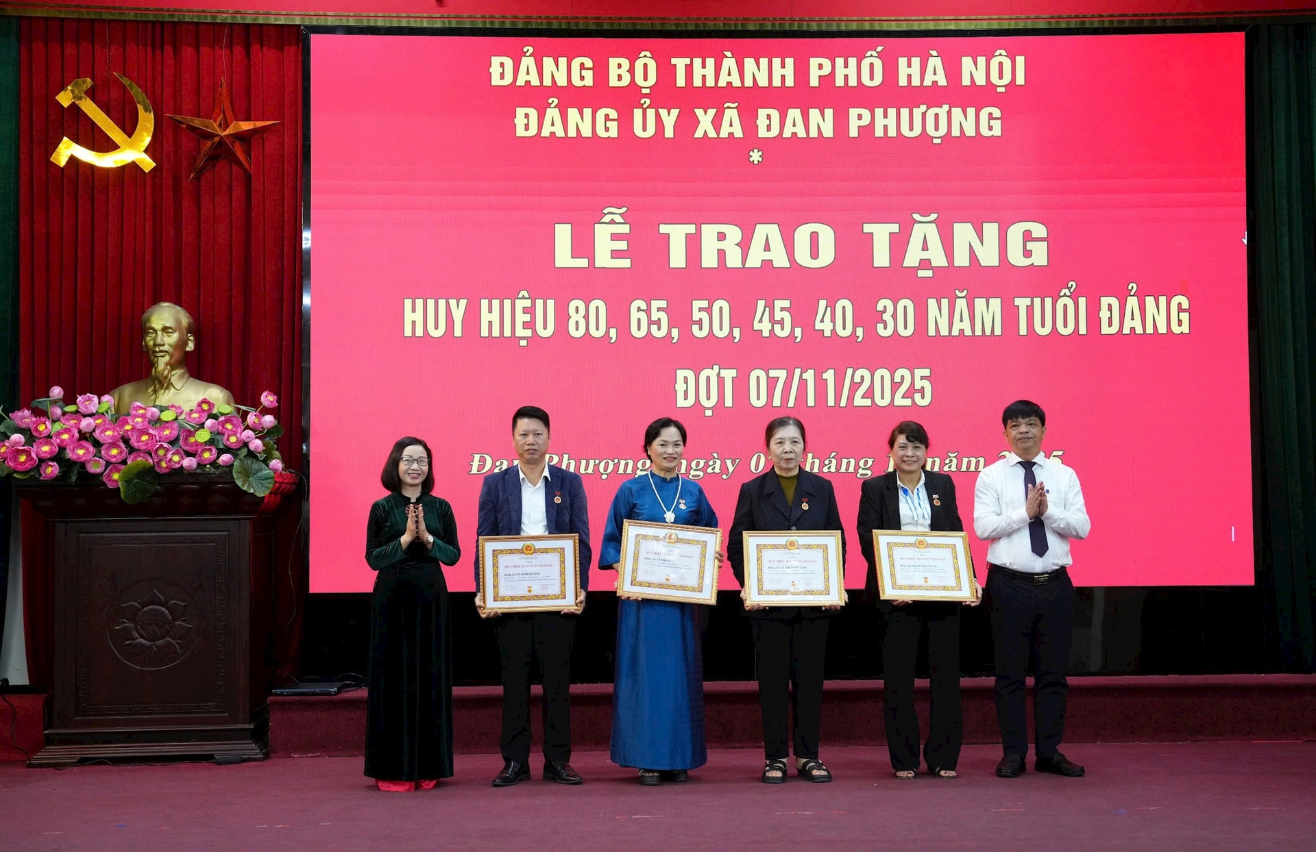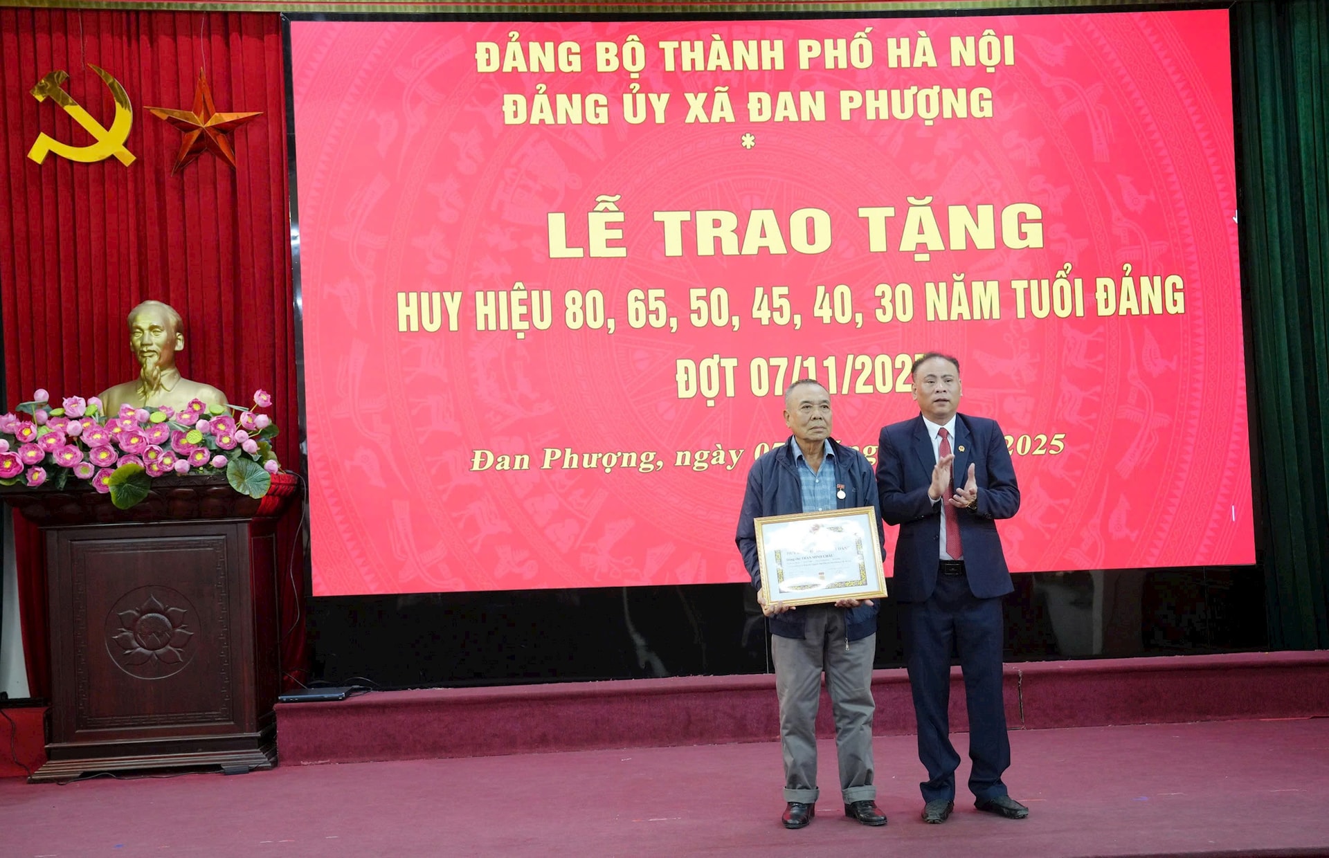 Đợt này, Đảng bộ xã Đan Phượng có 22 đảng viên được trao tặng Huy hiệu Đảng; trong đó có 1 đảng viên nhận Huy hiệu 80 năm tuổi Đảng, 1 đảng viên nhận Huy hiệu 65 năm tuổi Đảng, 1 đảng viên nhận Huy hiệu 50 năm tuổi Đảng, 10 đảng viên nhận Huy hiệu 45 năm tuổi Đảng, 5 đảng viên nhận Huy hiệu 40 năm tuổi Đảng và 4 đảng viên nhận Huy hiệu 30 năm tuổi Đảng.