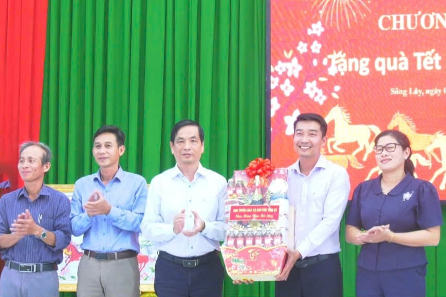 Trưởng Ban Tuyên giáo và Dân vận Tỉnh ủy Võ Thanh Bình tặng quà Tết của Tỉnh ủy, HĐND tỉnh, UBND tỉnh, Ủy ban MTTQ Việt Nam tỉnh cho Đảng bộ, chính quyền, Nhân dân xã Sông Lũy