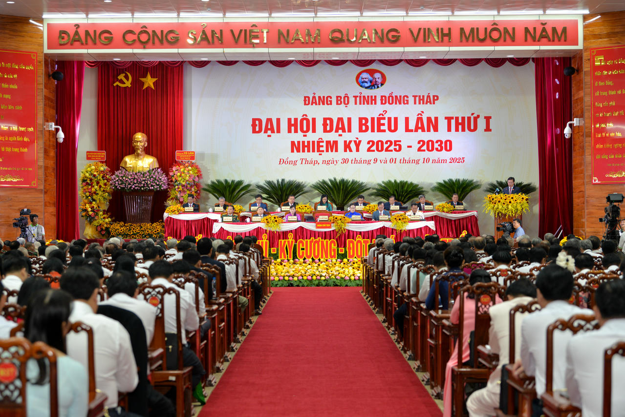 Đại hội đại biểu Đảng bộ tỉnh Đồng Tháp lần thứ I, nhiệm kỳ 2025 - 2030 được tổ chức trong 2 ngày 30/9 và 1/10. Trong 2 ngày làm việc, Đại hội tiến hành tổng kết, đánh giá khách quan kết quả thực hiện Nghị quyết Đại hội và kiểm điểm sự lãnh đạo, điều hành của Ban Chấp hành Đảng bộ tỉnh nhiệm kỳ 2020 - 2025; thảo luận và biểu quyết thông qua mục tiêu, nhiệm vụ của nhiệm kỳ 2025 - 2030.