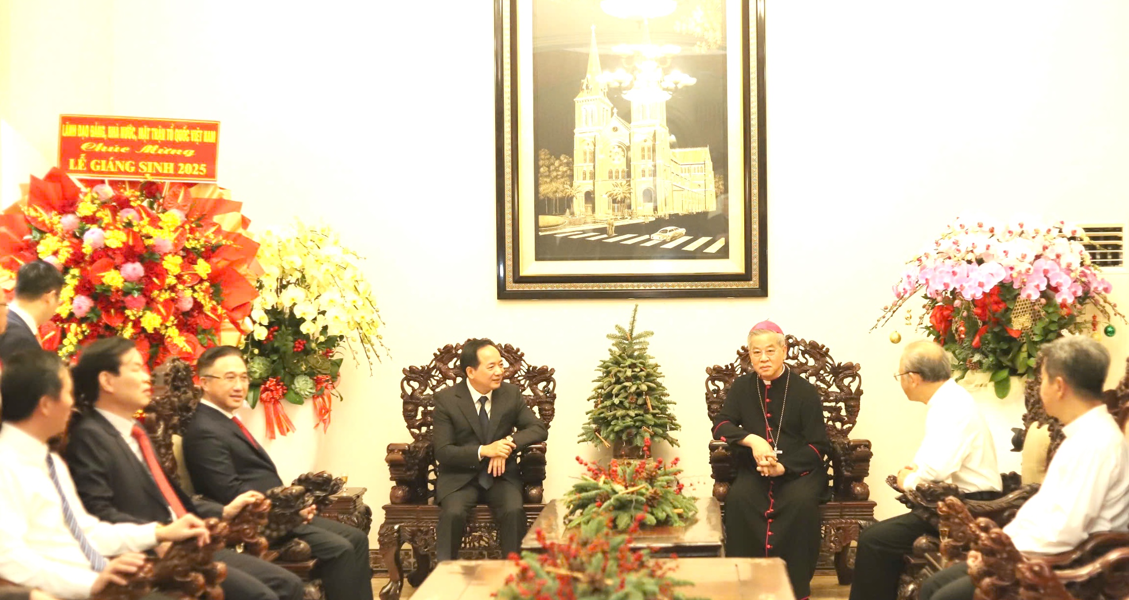 Trưởng Ban Tuyên giáo và Dân vận Trung ương cùng đoàn công tác đến thăm, chúc mừng Giáng sinh tại Tòa Tổng Giám mục Tổng Giáo phận TPHCM; Ảnh: NGUYỄN PHAN