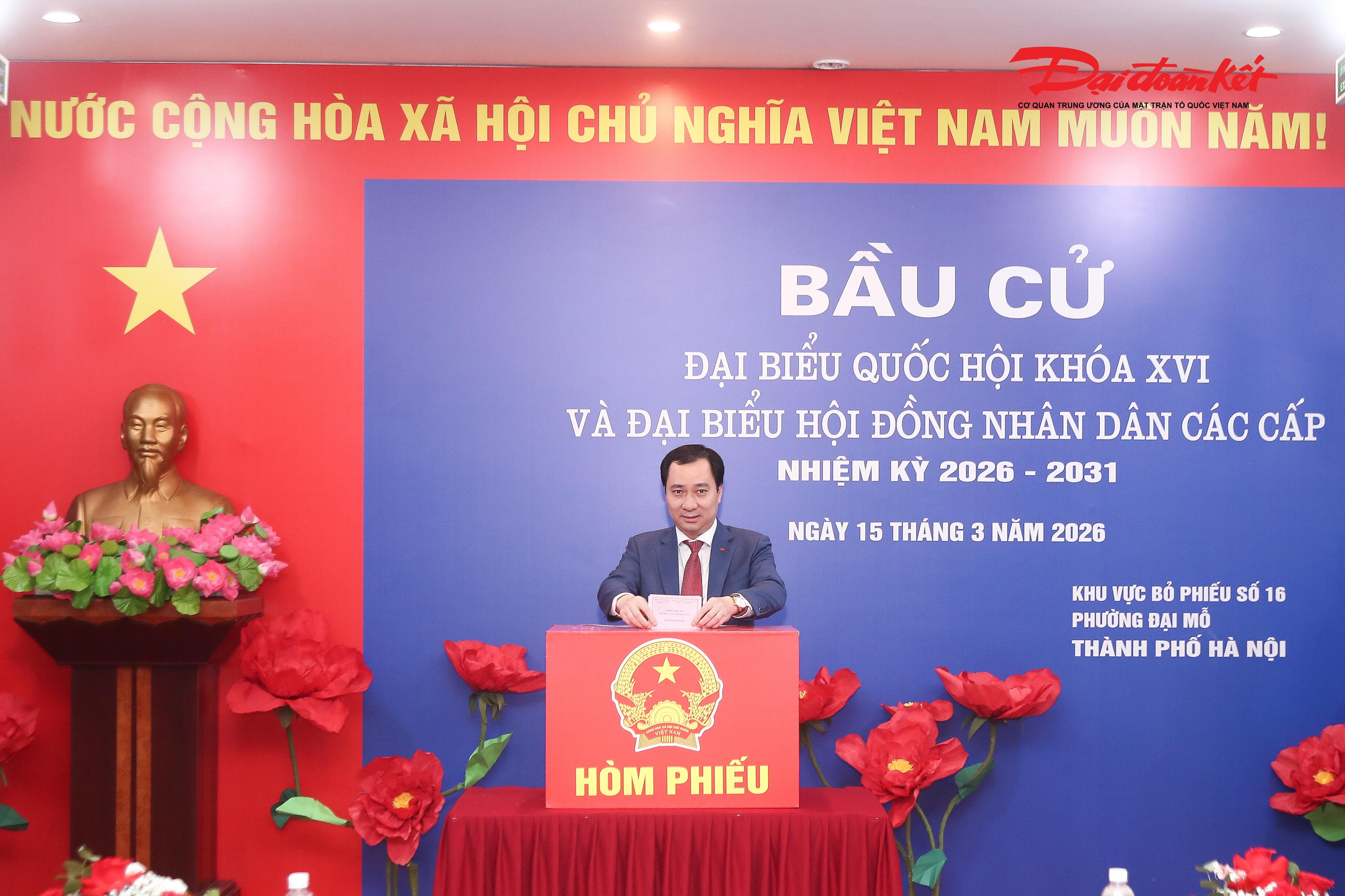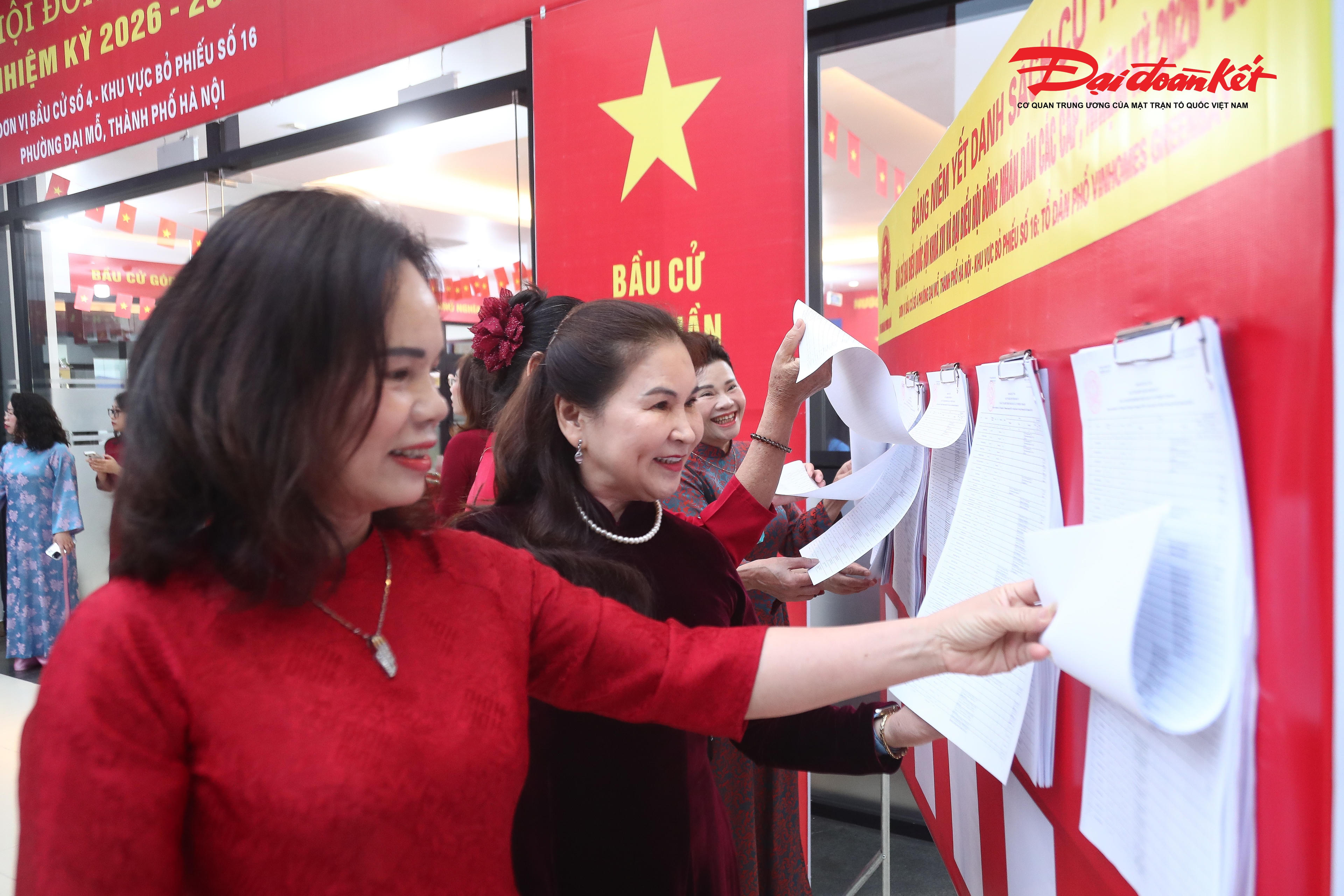 Theo ghi nhận của phóng viên Báo Đại Đoàn Kết, từ 7h sáng 15/3, nhiều cử tri đã có mặt tại Tổ bầu cử số 16, phường Đại Mỗ (Hà Nội) để bỏ phiếu, trong đó có nguyên Phó Chủ tịch nước Nguyễn Thị Doan; ông Trịnh Văn Quyết, Ủy viên Bộ Chính trị, Trưởng Ban Tuyên giáo và Dân vận Trung ương; ông Vũ Văn Tiến - Ủy viên Đoàn Chủ tịch TƯ MTTQ Việt Nam, Trưởng ban Tuyên giáo và Dân vận Đảng ủy Cơ quan UBTƯ MTTQ Việt Nam.