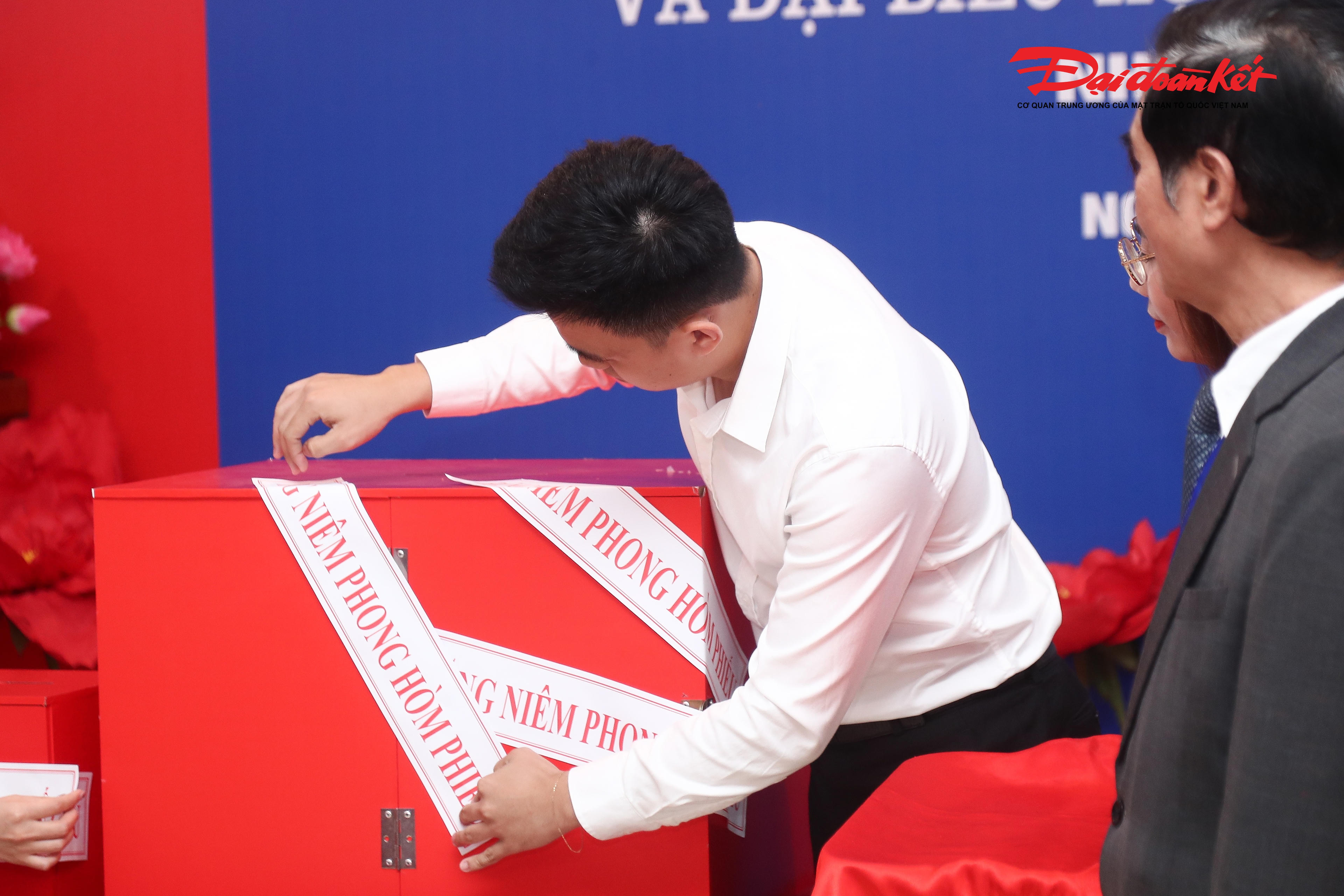 Thùng phiếu tại Tổ bầu cử số 16 được niêm phong, bảo đảm quy trình bầu cử diễn ra minh bạch, đúng quy định.
