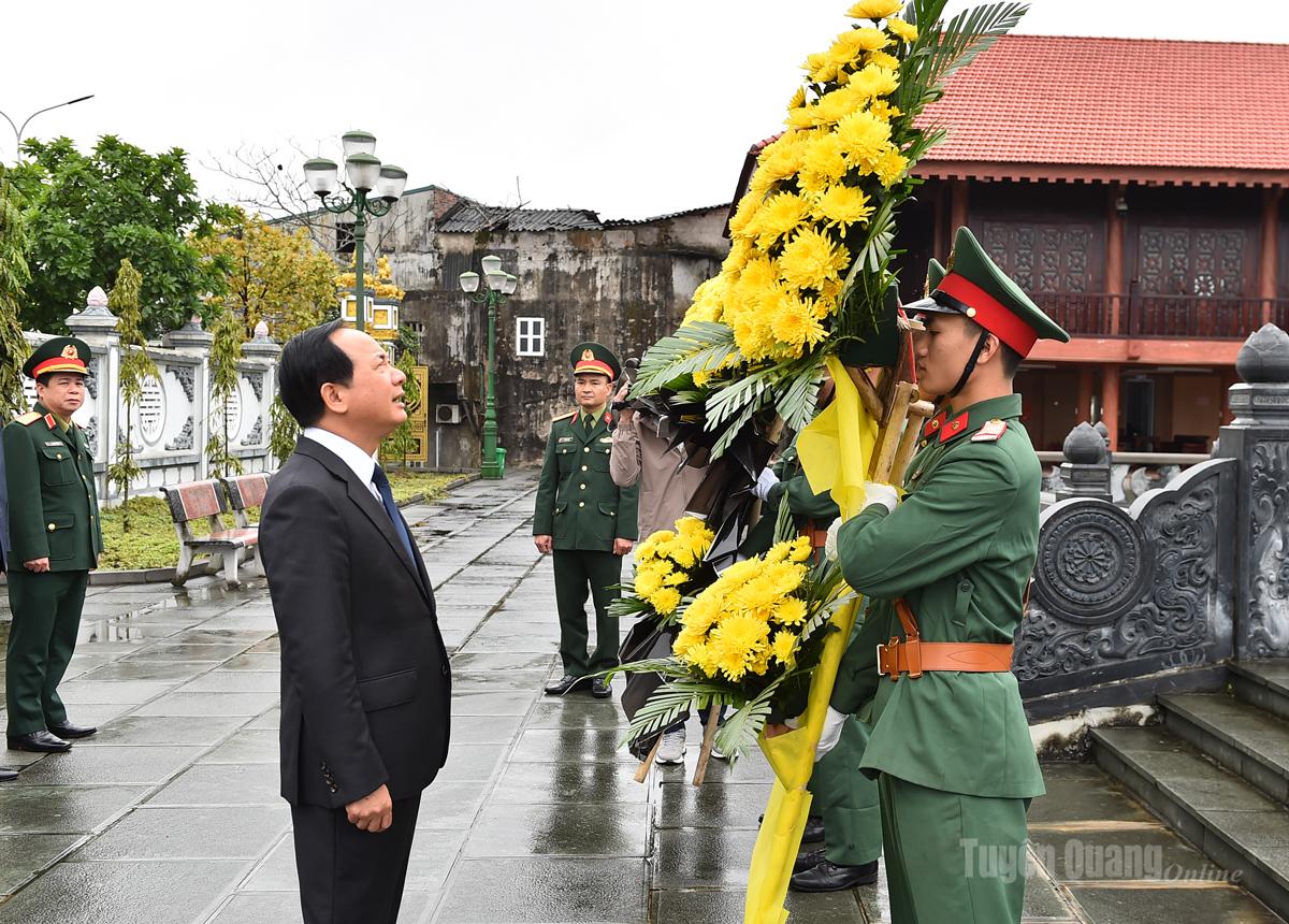 Đồng chí Trịnh Văn Quyết, Trưởng Ban Tuyên giáo và Dân vận Trung ương duyệt vòng hoa, dâng hương tại Nghĩa trang Liệt sỹ tỉnh Tuyên Quang. Các đại biểu dâng hương các Liệt sỹ tại Nhà tưởng niệm.