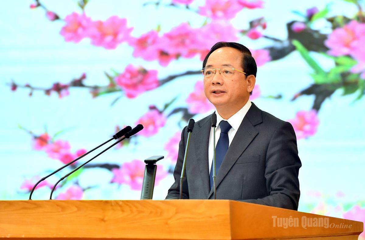 Đồng chí Trịnh Văn Quyết, Trưởng Ban Tuyên giáo và Dân vận Trung ương phát biểu chúc Tết Đảng bộ, chính quyền và Nhân dân các dân tộc tỉnh Tuyên Quang.