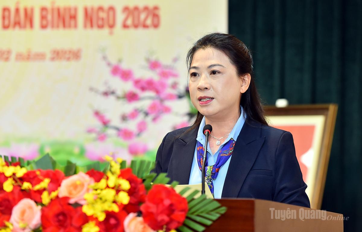 Thay mặt Đảng bộ, chính quyền và Nhân dân các dân tộc tỉnh Tuyên Quang, Phó Bí thư Thường trực Tỉnh ủy Lê Thị Kim Dung trân trọng cảm ơn đồng chí Trịnh Văn Quyết cùng đoàn công tác của Trung ương đã dành thời gian về thăm, chúc Tết và động viên tỉnh nhân dịp Xuân Bính Ngọ 2026.