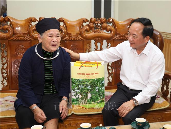 Đồng chí Trịnh Văn Quyết, Ủy viên Bộ Chính trị, Bí thư Trung ương Đảng, Trưởng Ban Tuyên giáo và Dân vận Trung ương thăm, tặng quà cho gia đình bà Nguyễn Thị Lành, vợ liệt sĩ Nguyễn Tiến Ngận (tổ 34, thôn Chang, phường Hà Giang 1).