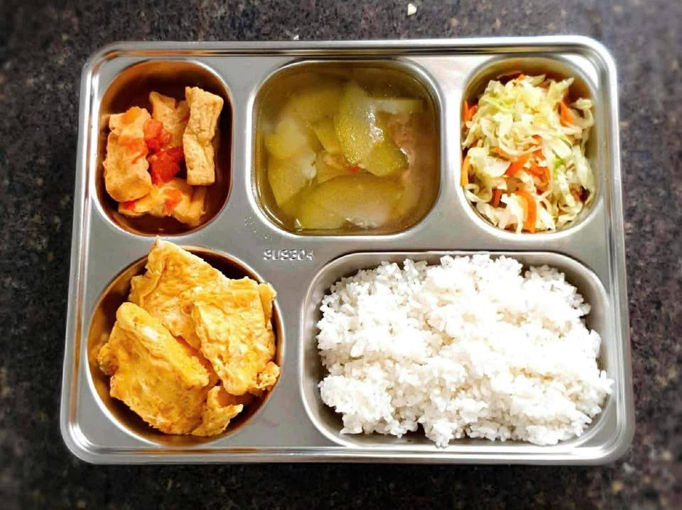 "Bữa cơm đạm bạc" gây xôn xao dư luận tại Trường Tiểu học Ba Đồn.