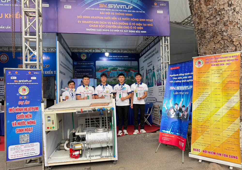 Năm nay, Trường Cao đẳng Cơ điện và Xây dựng Bắc Ninh là đơn vị duy nhất của tỉnh Bắc Ninh tham gia Ngày hội với 3 dự án thể hiện rõ tinh thần sáng tạo, ứng dụng thực tiễn và bắt kịp xu thế phát triển của xã hội hiện đại. Trong đó, dự án “EV SMARTCARE Dịch vụ bảo dưỡng ô tô điện tại nhà - Chăm sóc chuyên sâu cho ô tô điện” là bước đi đón đầu xu thế chuyển đổi xanh, đáp ứng nhu cầu bảo dưỡng, chăm sóc phương tiện điện một cách linh hoạt, tiện lợi cho người sử dụng. Dự án “Bãi gửi xe thông minh” mở ra một hướng tiếp cận hiệu quả nhằm giải quyết bài toán thiếu hụt không gian đỗ xe, góp phần xây dựng đô thị văn minh, hiện đại và giảm áp lực giao thông. Dự án Mô hình “Heatpum sưởi nền và nước nóng sinh hoạt” mang đến giải pháp nâng cao chất lượng cuộc sống, hướng tới sự tiện nghi, tiết kiệm năng lượng và thân thiện với môi trường. Đây là mô hình có tính ứng dụng cao trong các công trình dân dụng và thương mại.