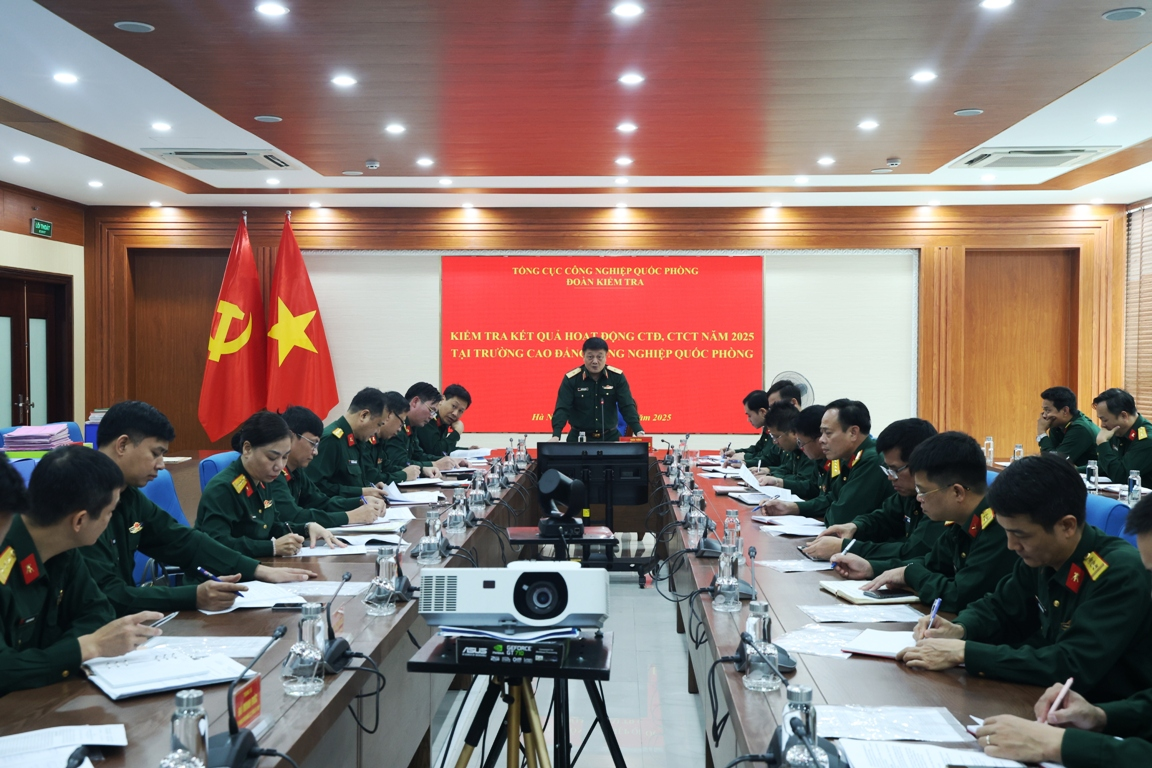Đoàn kiểm tra đánh giá: Năm 2025, hoạt động công tác công tác Đảng, công tác chính trị của Trường Cao đẳng Công nghiệp Quốc phòng cơ bản được tổ chức triển khai thực hiện nghiêm túc, đúng nguyên tắc. Các nghị quyết, chỉ thị, kết luận, quy định, kế hoạch của cấp trên được Đảng ủy, chỉ huy đơn vị quán triệt sâu sắc và triển khai thực hiện có hiệu quả, bám sát kế hoạch và nội dung chương trình đề ra. Nhà trường triển khai tốt phong trào thi đua Quyết thắng và hoạt động kỷ niệm các ngày lễ lớn của Đảng, Nhà nước, Quân đội, Tổng cục; tổ chức thành công Đại hội đại biểu Đảng bộ, Đại hội các tổ chức quần chúng nhiệm kỳ 2025-2030; chủ động tuyên truyền, định hướng tư tưởng, dư luận…