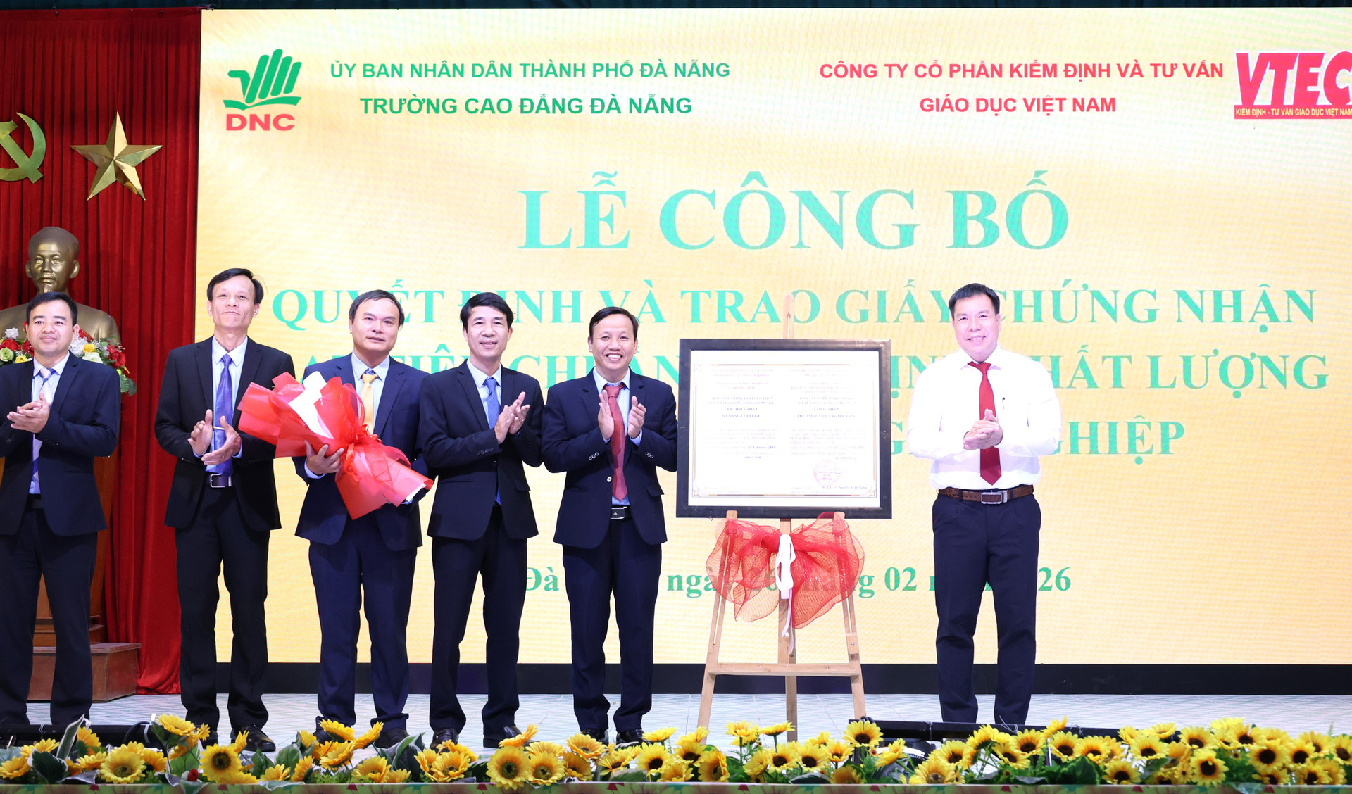 Sau thời gian triển khai hoạt động đánh giá ngoài tuân thủ nghiêm ngặt theo Thông tư số 14/2024/TT-BLĐTBXH ngày 31/12/2024 của Bộ trưởng Bộ Lao động, Thương binh và Xã hội (trước đây), Trường Cao đẳng Đà Nẵng đáp ứng xuất sắc các tiêu chí, tiêu chuẩn kiểm định chất lượng cơ sở giáo dục nghề nghiệp như: mục tiêu, quản lý và tài chính; hoạt động đào tạo; nhà giáo, cán bộ quản lý và nhân viên; cơ sở vật chất, thiết bị đào tạo; người học và các hoạt động hỗ trợ người học…