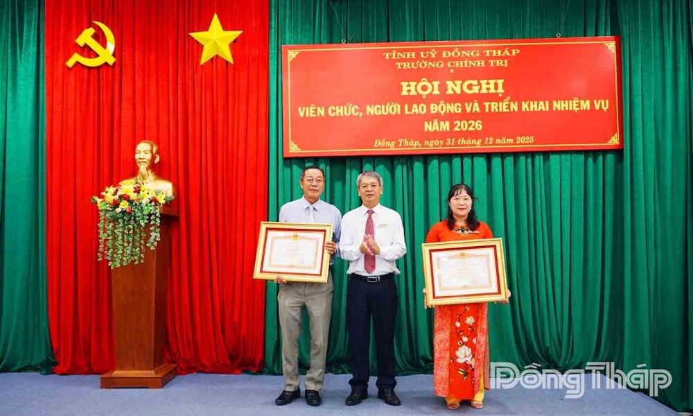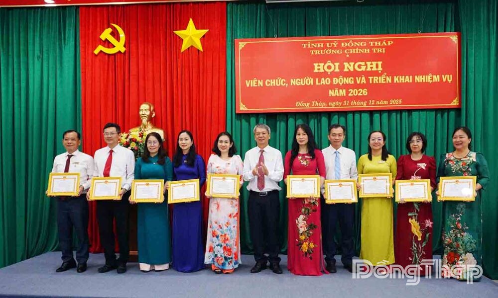 Dịp này, có 2 cá nhân vinh dự được Thủ tướng Chính phủ tặng Bằng khen vì đã có thành tích xuất sắc trong công tác từ năm 2020 - 2024. Ngoài ra, Trường Chính trị Đồng Tháp trao tặng danh hiệu Chiến sĩ thi đua cơ sở và Lao động tiên tiến cho 4 tập thể và 72 cá nhân; trao Giấy khen cho 15 cá nhân có thành tích trong hoạt động nghiên cứu khoa học và có nhiều đóng góp trong hoạt động chung của trường năm 2025.