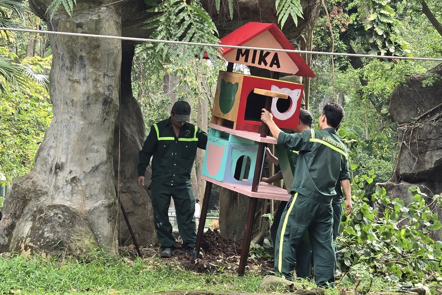 Mika sống hòa thuận cùng gấu Misa - Misi và trở thành hình ảnh quen thuộc tại chuồng gấu. Nhân viên Thảo Cầm Viên còn "xây" nhà riêng cho cô mèo.