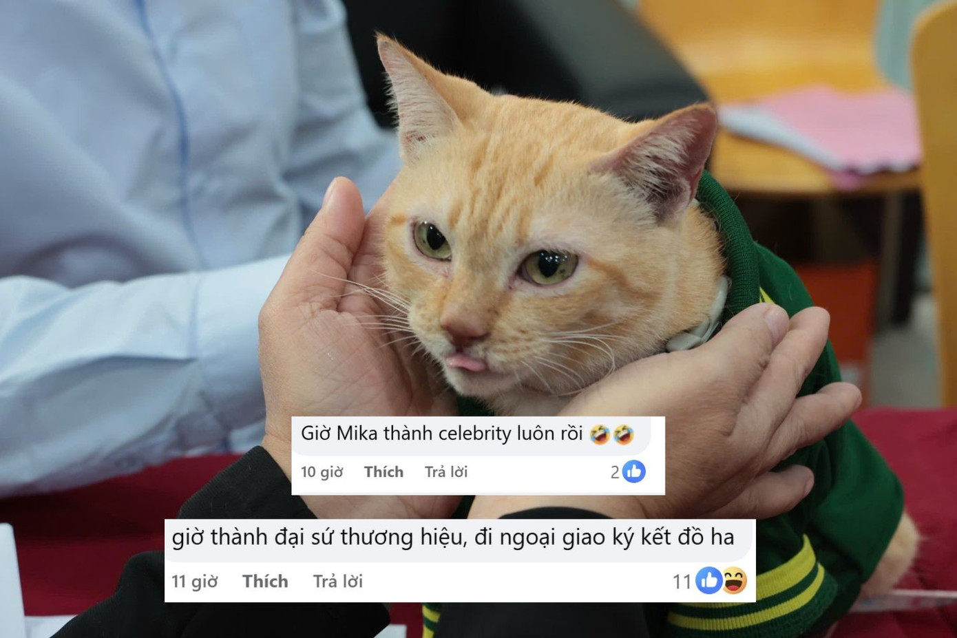 Cộng đồng mạng để lại những bình luận hài hước dành cho Mika. Có người hài hước: "Mika giờ thành đại sứ thương hiệu, đi ngoại giao ký kết đồ rồi", hay "Sống đủ lâu để thấy mèo đại diện tổ chức đi từ thiện".