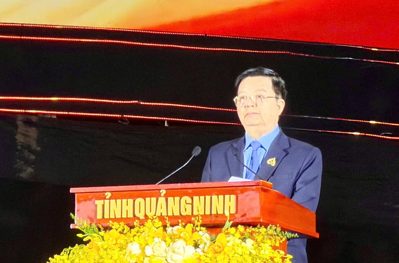 Phó Bí thư Tỉnh ủy, Chủ tịch UBND tỉnh Quảng Ninh Bùi Văn Khắng phát biểu tại Lễ đón nhận.