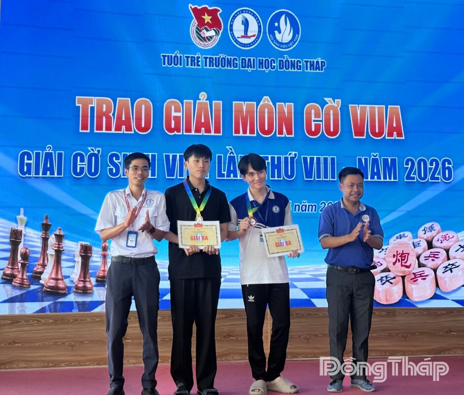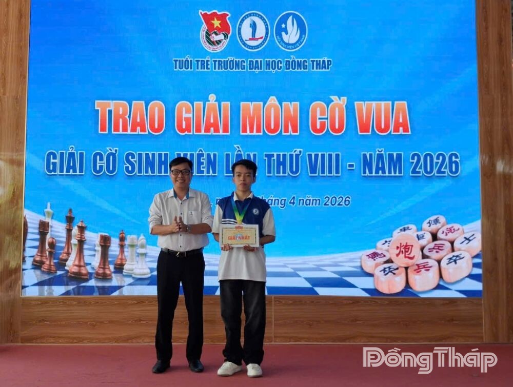 Bí thư Đoàn trường Đại học Đồng Tháp trao giải Nhất môn Cờ vua.