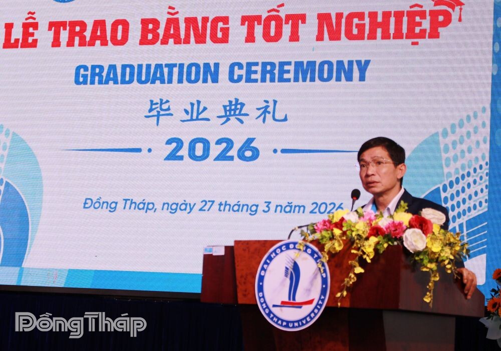 Phát biểu tại buổi lễ, Phó GS-TS Hồ Sỹ Thắng, Phó Hiệu trưởng Trường Đại học Đồng Tháp chúc mừng các tân cử nhân đã hoàn thành khóa học và được công nhận tốt nghiệp. Sau khi tốt nghiệp ra trường, mong các tân cử nhân phát huy kiến thức, kỹ năng đã học được để cống hiến trong công việc; đồng thời tiếp tục học tập để nâng cao trình độ chuyên môn, nghiệp vụ.