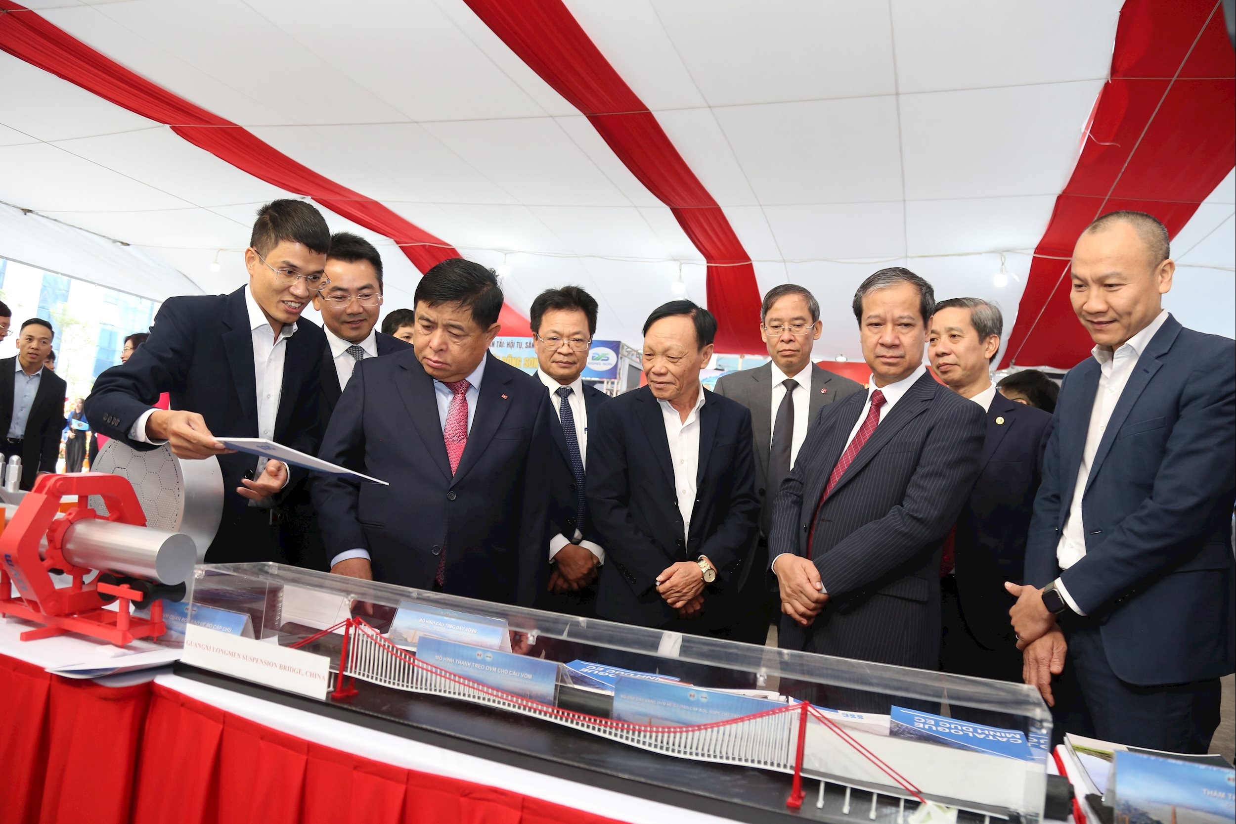 Phó Thủ tướng Chính phủ Nguyễn Chí Dũng và Bộ trưởng Bộ GD-ĐT Nguyễn Kim Sơn thăm các sản phẩm nghiên cứu của Trường Đại học Giao thông Vận tải
