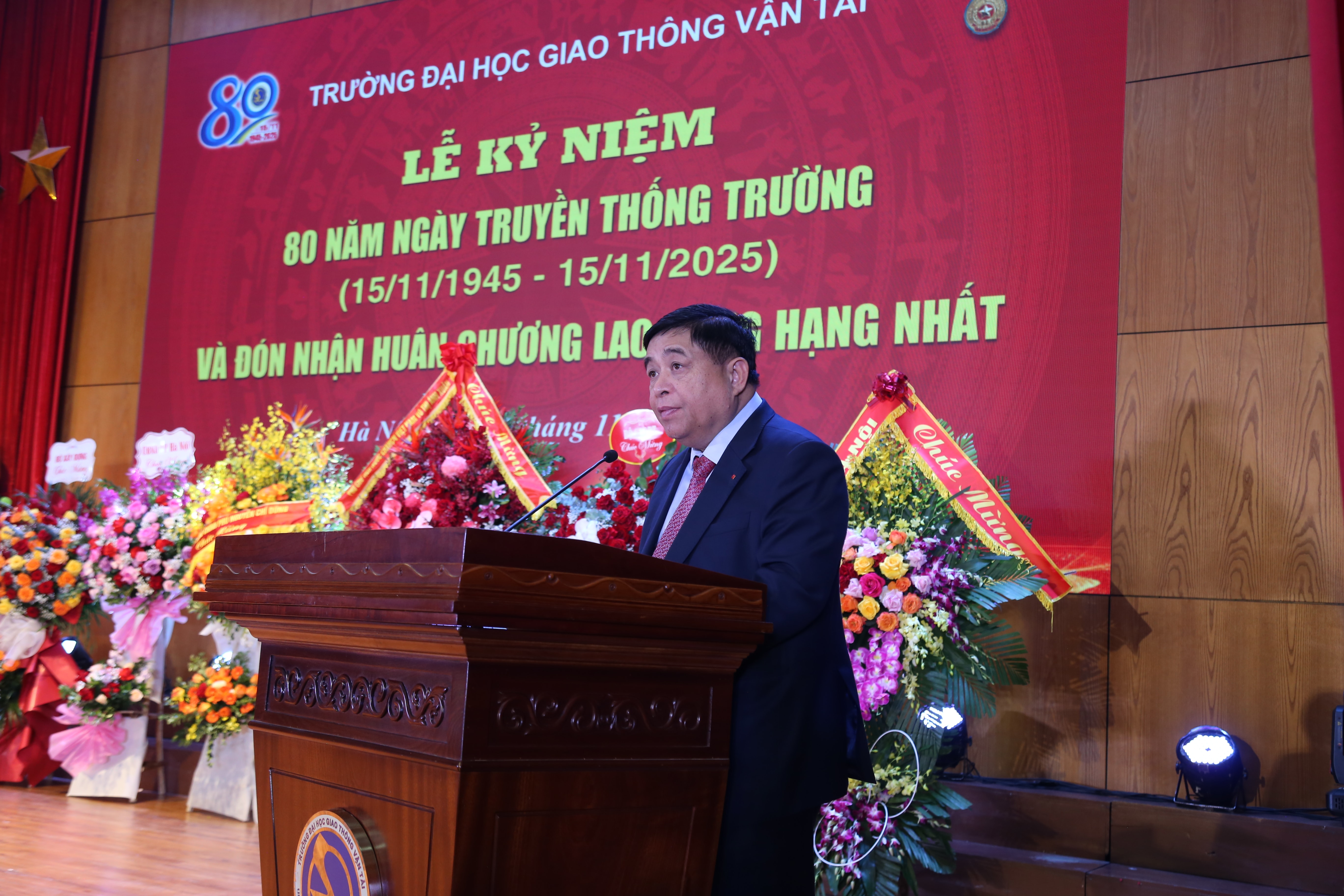 Phó Thủ tướng nhận định: “Nhìn lại chặng đường 80 năm qua, chúng ta vô cùng tự hào về những đóng góp to lớn của biết bao thế hệ thầy cô giáo, sinh viên trường Giao thông vận tải - Là biểu tượng đẹp của trí tuệ, sáng tạo và tinh thần phụng sự đất nước. Tám mươi năm qua, từ mái trường này hàng chục nghìn kỹ sư, nhà khoa học, chuyên gia, nhà quản lý tài năng đã học tập và trưởng thành, tỏa đi khắp đất trời của Tổ quốc tươi đẹp, kiến tạo nên những công trình huyết mạch của đất nước.