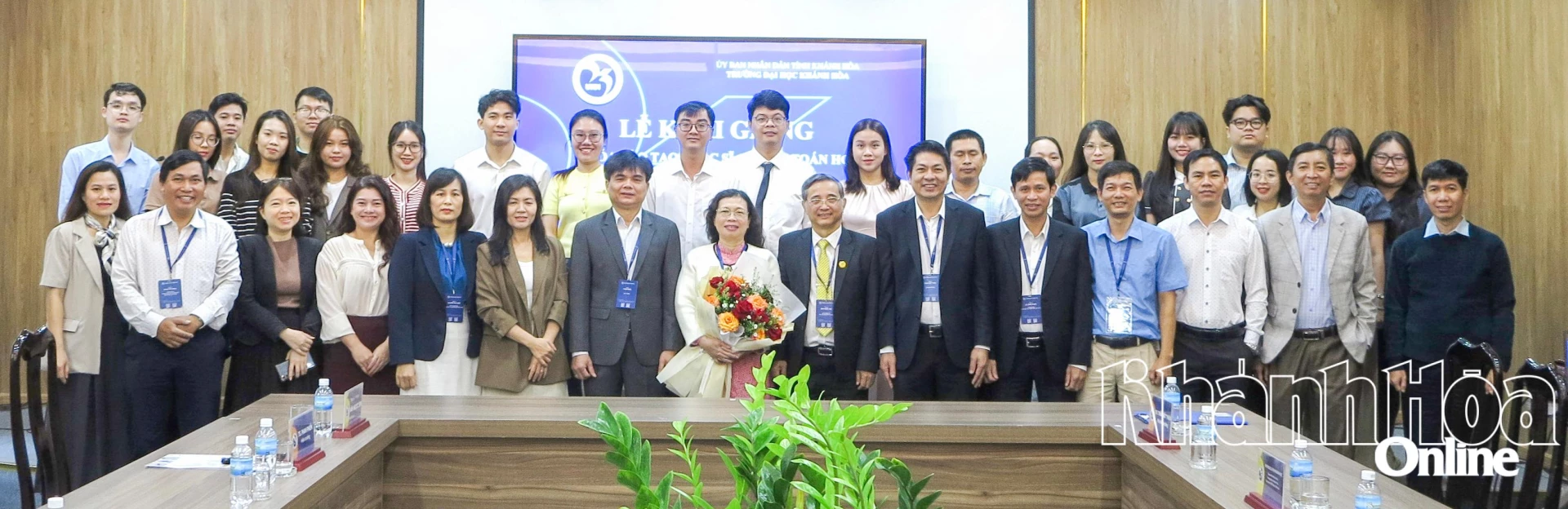 Lãnh đạo nhà trường cùng các giảng viên, học viên tại Lễ khai giảng khóa đào tạo trình độ thạc sĩ ngành Toán học.