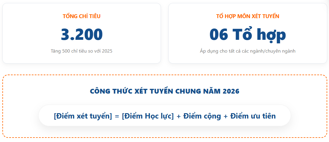 Mùa tuyển sinh 2026, thực hiện thống nhất chủ trương của Đại học Quốc gia TP. Hồ Chí Minh, Trường Đại học Kinh tế – Luật tuyển sinh hình thức đào tạo đại học chính quy theo phương thức xét tuyển tổng hợp và tuyển sinh hình thức đào tạo liên kết quốc tế do trường nước ngoài cấp bằng, chi tiết như sau: