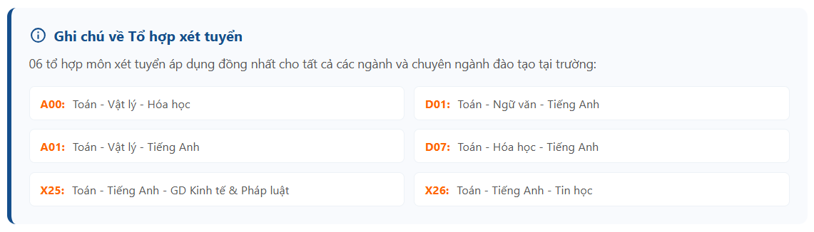 – Đối với thí sinh đủ điều kiện tham gia xét tuyển ở nhiều phương thức, đối tượng xét tuyển, tổ hợp xét tuyển: khi đăng ký vào một ngành/chuyên ngành/chương trình sẽ được xét đồng thời để đảm bảo cơ hội trúng tuyển cao nhất.