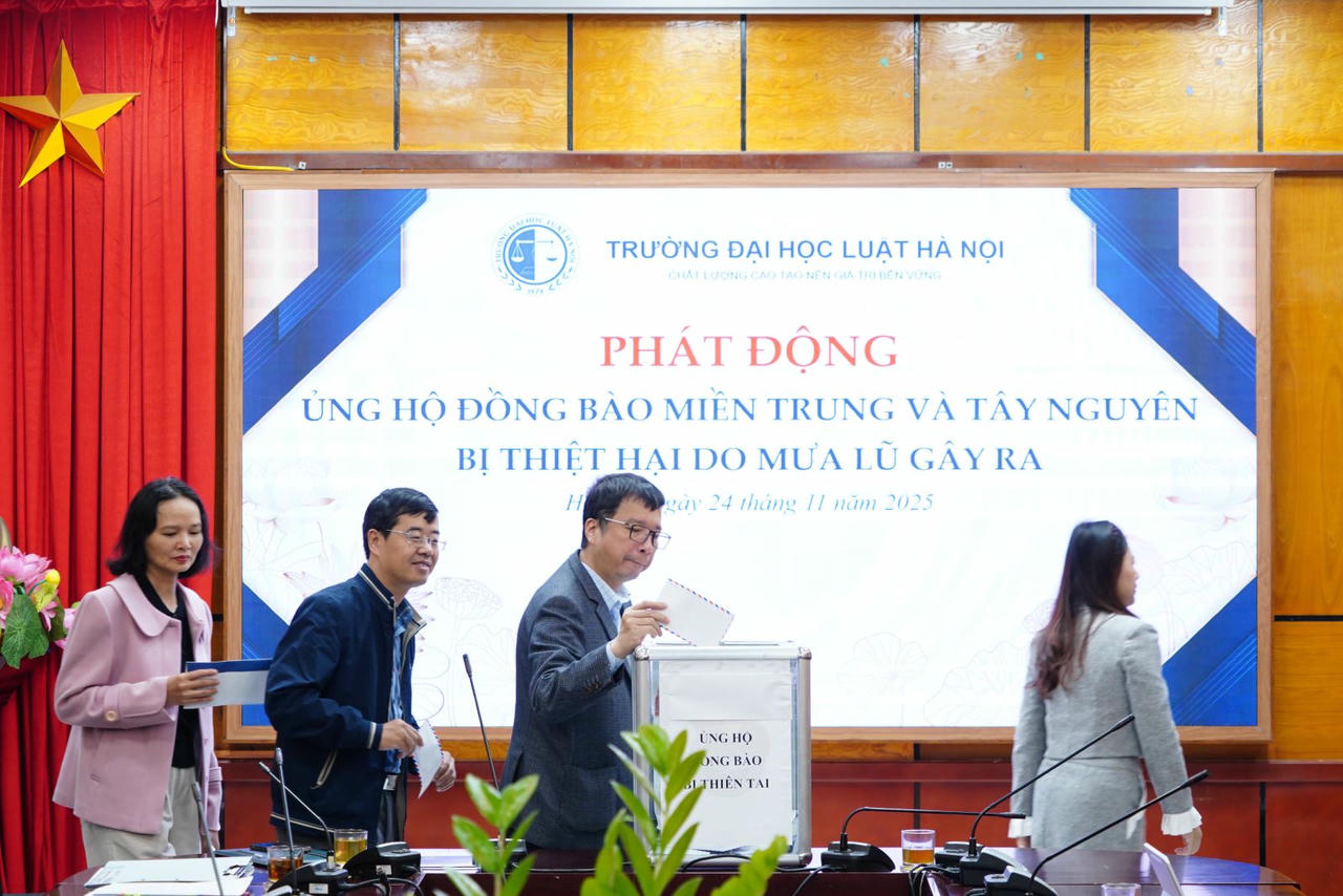 Lễ phát động ủng hộ đồng bào miền Trung và Tây Nguyên bị thiệt hại do mưa lũ của Trường Đại học Luật Hà Nội là hoạt động thiết thực, góp phần lan tỏa tinh thần nhân văn, trách nhiệm cộng đồng và hình ảnh đẹp của Nhà trường trong chuỗi các hoạt động hướng về xã hội, vì cộng đồng.