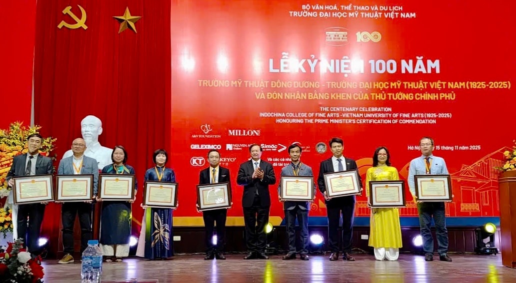 Tại buổi lễ, Trường Đại học Mỹ thuật Việt Nam đã vinh dự nhận Bằng khen của Chính phủ và Bằng khen của Bộ Văn hóa, Thể thao và Du lịch dành cho các khoa chuyên môn, ghi nhận những thành tích nổi bật trong sự nghiệp đào tạo nghệ thuật và đóng góp cho nền mỹ thuật nước nhà.