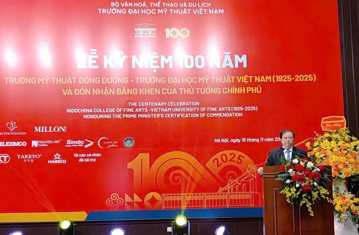 Phát biểu tại lễ kỷ niệm, Thứ trưởng Bộ Văn hóa, Thể thao và Du lịch Tạ Quang Đông ghi nhận và bày tỏ sự tri ân sâu sắc những nỗ lực, cống hiến bền bỉ suốt chặng đường 100 năm vẻ vang của nhà trường, đồng thời khẳng định, nhà trường đã góp phần khai mở dòng chảy mỹ thuật hiện đại Việt Nam, kết tinh tinh hoa văn hóa Á – Âu và đặt nền móng cho các ngành họa, điêu khắc, thiết kế, sơn mài, mỹ thuật ứng dụng... phát triển theo hướng chuyên nghiệp.