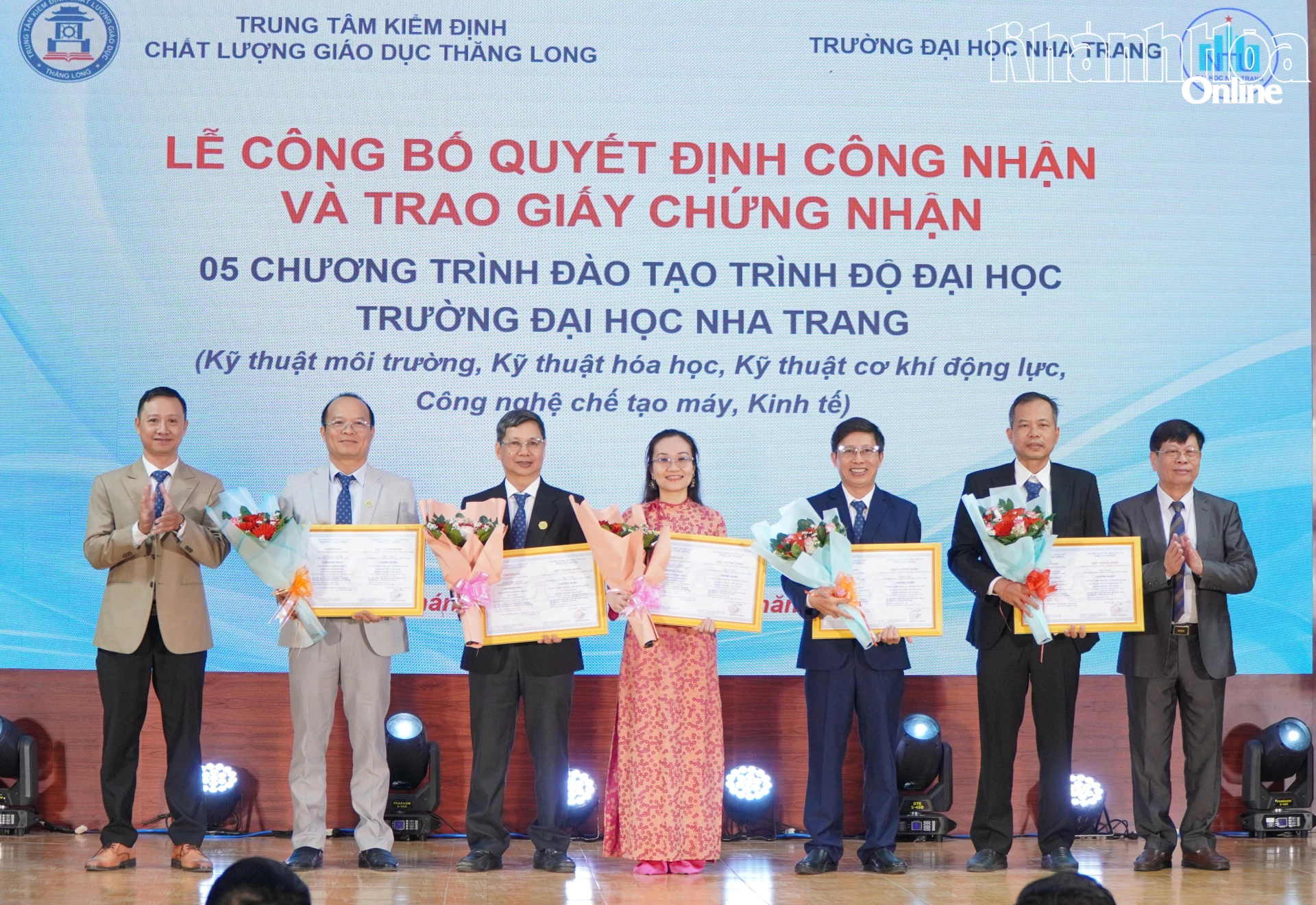 Lãnh đạo nhà trường trao chứng nhận kiểm định chất lượng chương trình đào tạo cho đại diện các khoa.