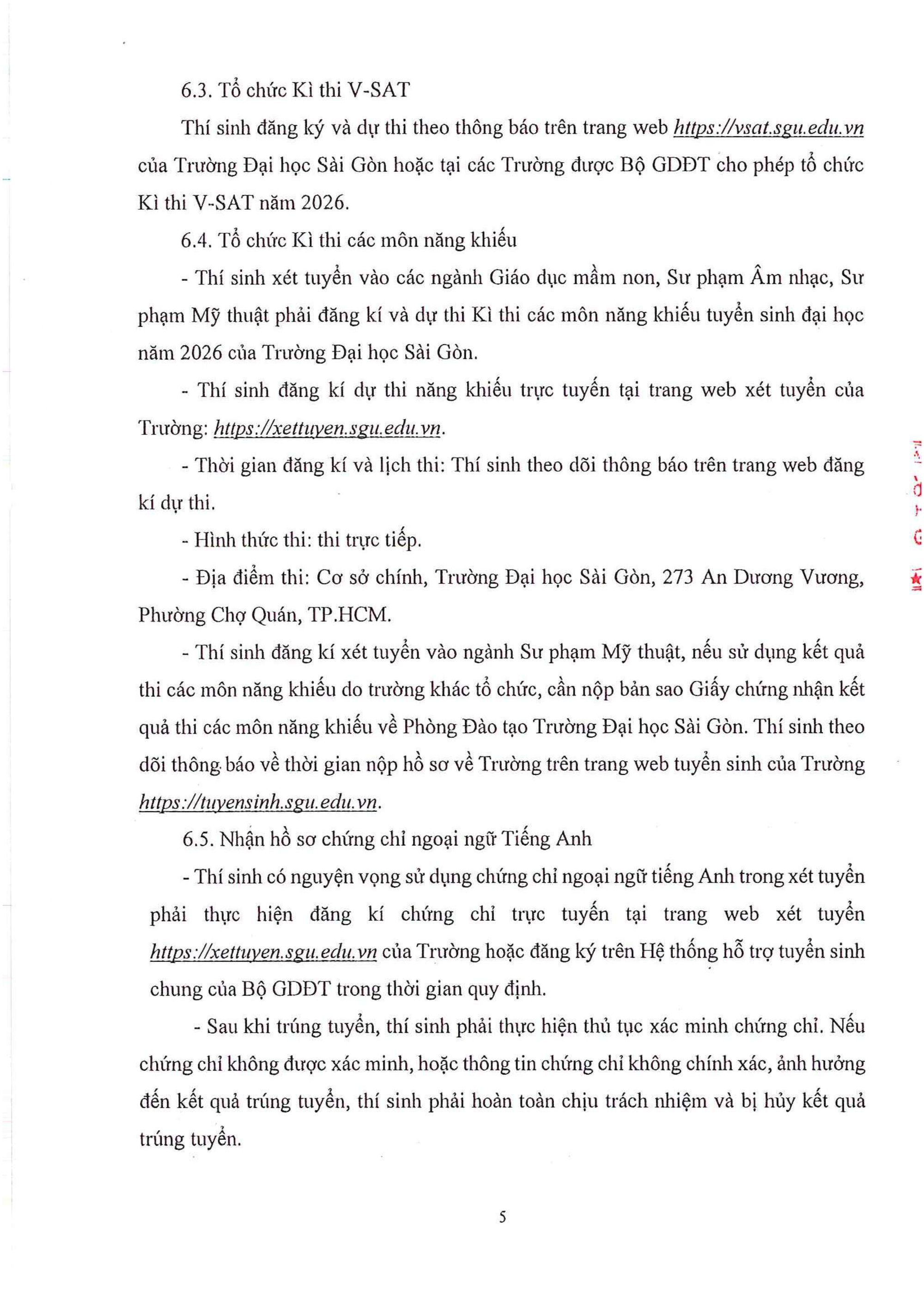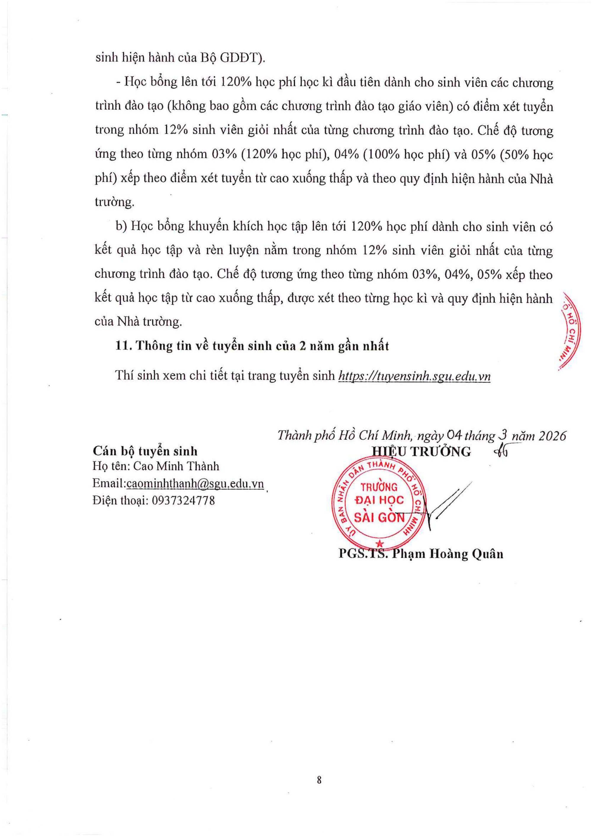TOÀN VĂN: Dự kiến Thông tin tuyển sinh 2026 của Trường Đại học Sài Gòn./.