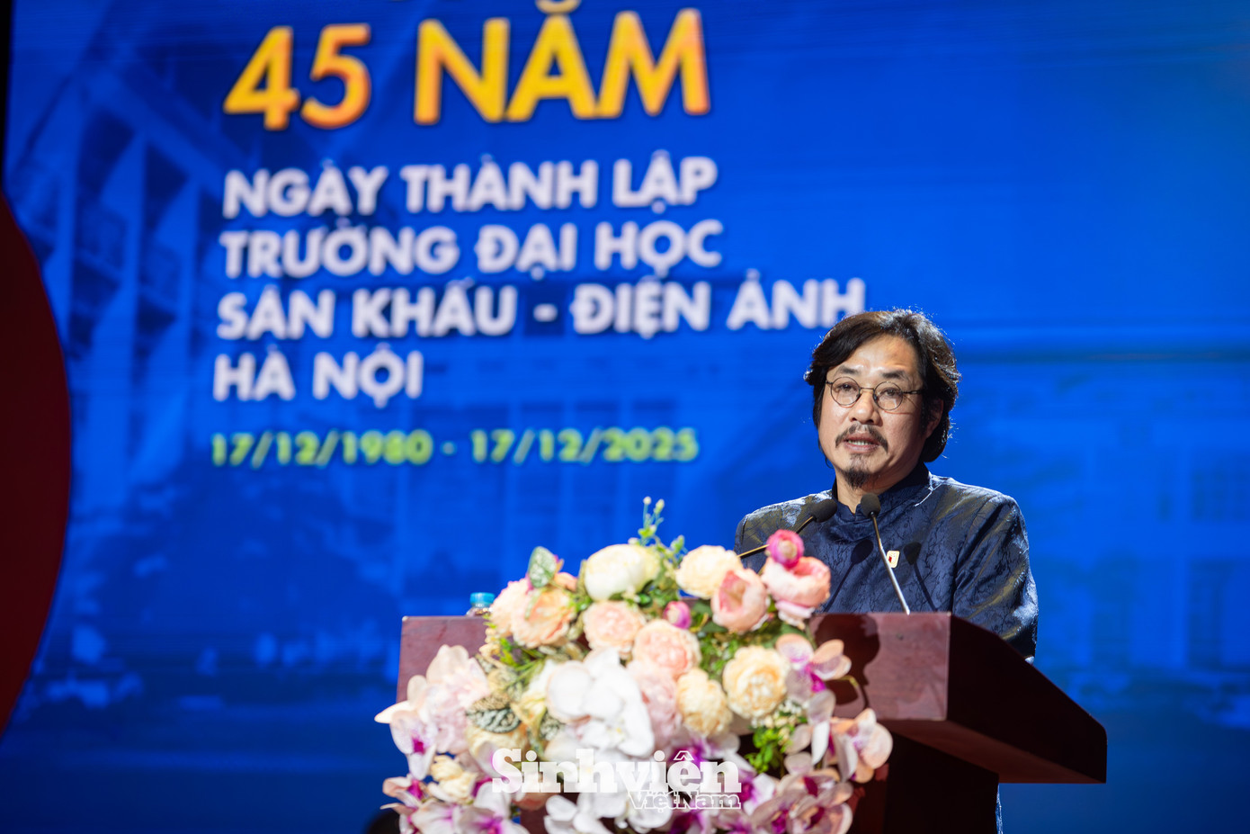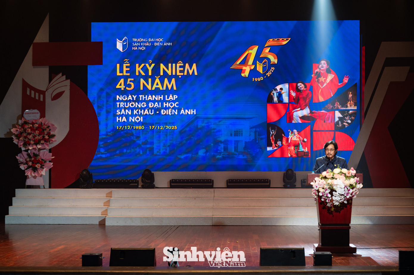 Trong diễn văn khai mạc, TS. NSƯT Bùi Như Lai - Bí thư Đảng ủy, Hiệu trưởng nhà trường đã xúc động ôn lại chặng đường 45 năm xây dựng và trưởng thành. Từ những ngày đầu thành lập (17/12/1980) với cơ sở vật chất còn thô sơ, đến nay, Trường Đại học Sân khấu - Điện ảnh Hà Nội đã khẳng định vị thế là cơ sở đào tạo trọng điểm.Hiệu trưởng nhà trường cũng khẳng định cam kết đổi mới toàn diện trong giai đoạn tới, bám sát các Nghị quyết của Bộ Chính trị về phát triển văn hóa và chuyển đổi số. Nhà trường xác định mục tiêu xây dựng môi trường học thuật nhân văn, khai mở tư duy, nơi tài năng được tôn trọng và sáng tạo được nâng đỡ, hướng tới kỷ nguyên vươn mình của quốc gia.