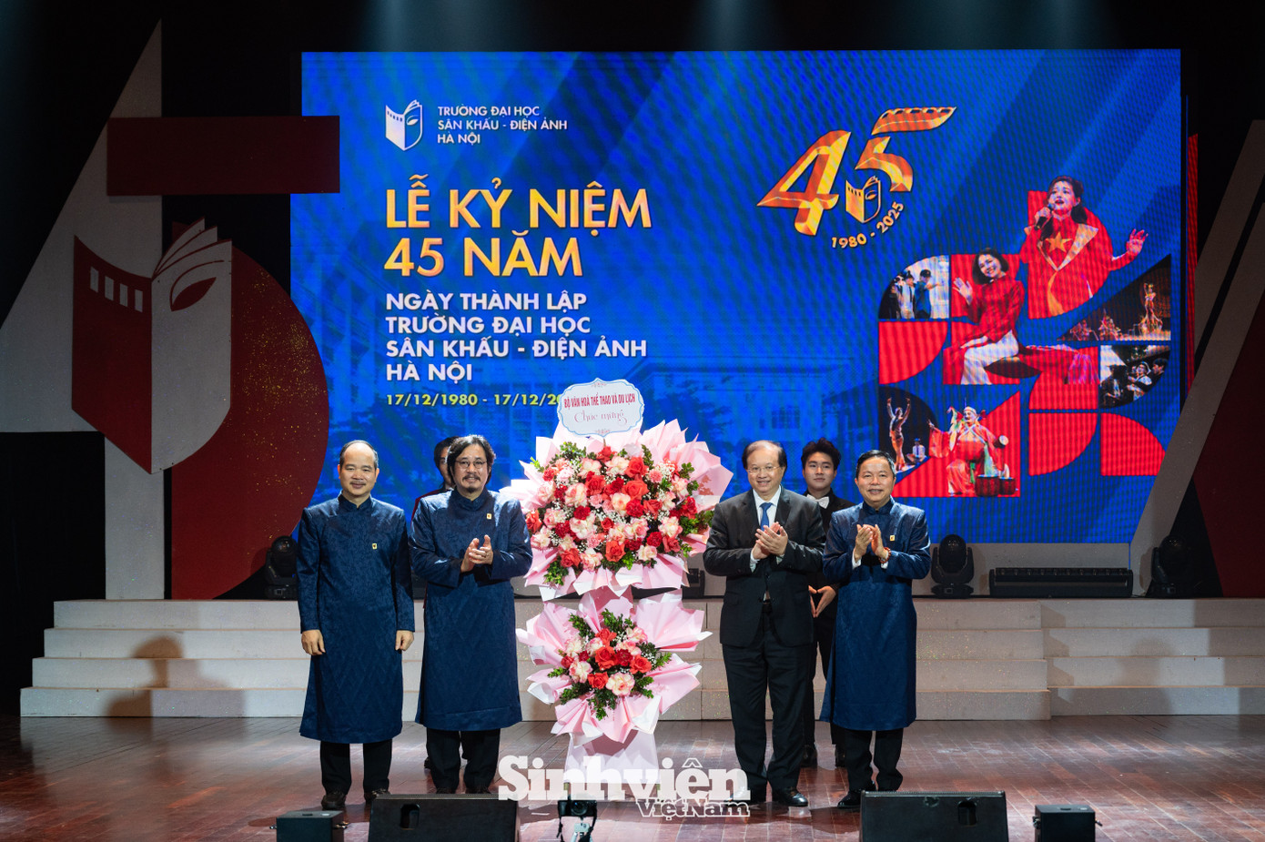 Buổi lễ có sự hiện diện của PGS.TS Tạ Quang Đông - Thứ trưởng Bộ Văn hóa, Thể thao và Du lịch cùng lãnh đạo các Cục, Viện thuộc Bộ Văn hóa, Thể thao và Du lịch; lãnh đạo Hội Nghệ sĩ Sân khấu Việt Nam, Hội Điện ảnh Việt Nam; Hội Nghệ sĩ Múa Việt Nam... Về phía Nhà trường có TS. NSƯT Bùi Như Lai - Hiệu trưởng, TS. Phạm Chí Thành - Chủ tịch Hội đồng trường, TS. Phạm Đắc Thi - Phó Hiệu trưởng cùng các nguyên lãnh đạo, các thế hệ cán bộ, giảng viên, cựu sinh viên, sinh viên đã về chung vui trong ngày hội lớn.