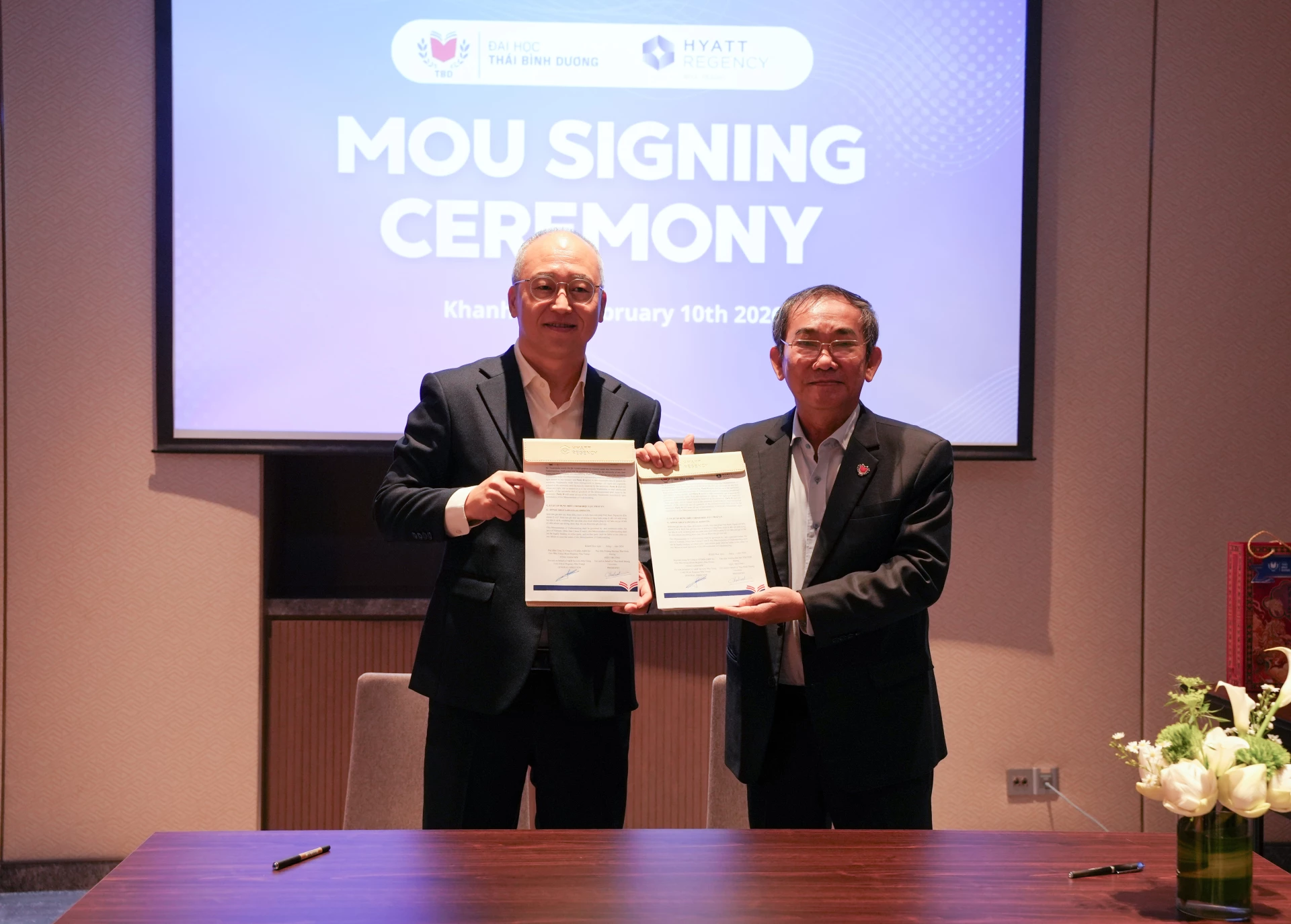 Ngày 10-2, Trường Đại học Thái Bình Dương và Khách sạn Hyatt Regency Nha Trang tổ chức ký kết bản ghi nhớ hợp tác nhằm thúc đẩy đào tạo nguồn nhân lực chất lượng cao và tăng cường gắn kết giữa học thuật với môi trường thực tiễn.