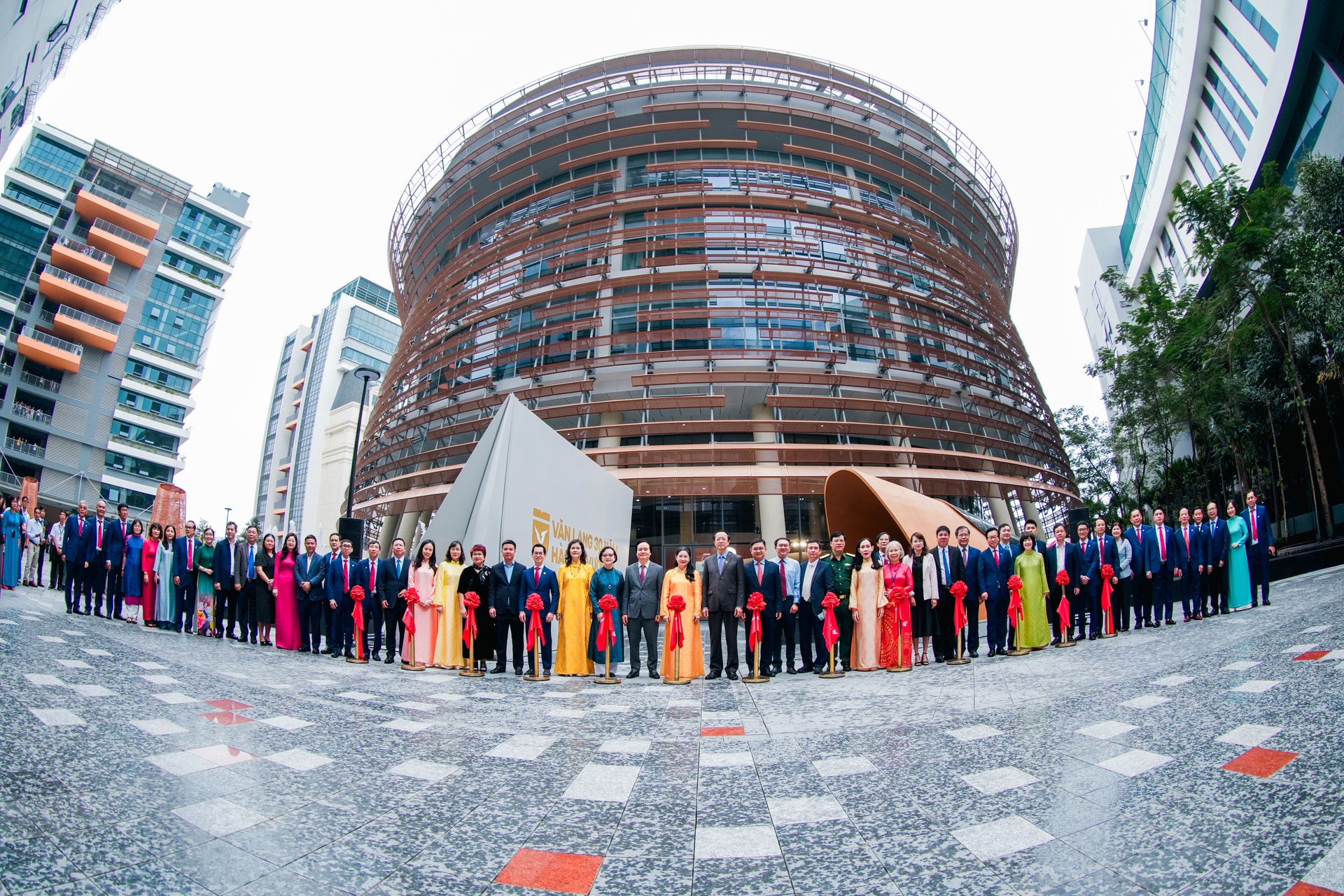 Các đại biểu dự khánh thành Trung tâm Đổi mới sáng tạo VLU. Ảnh: Nghiêm Ý.