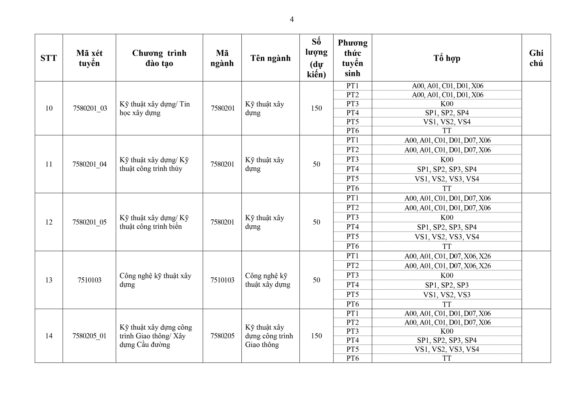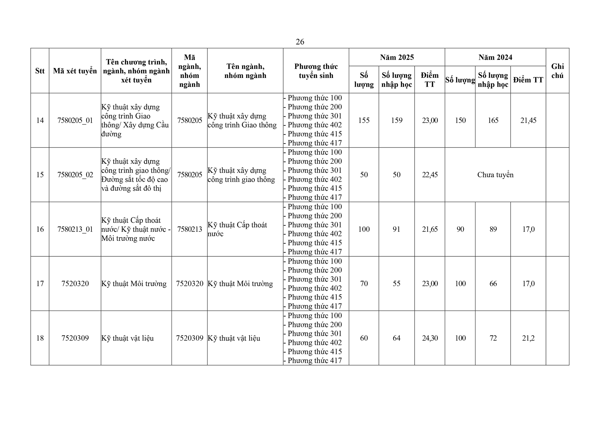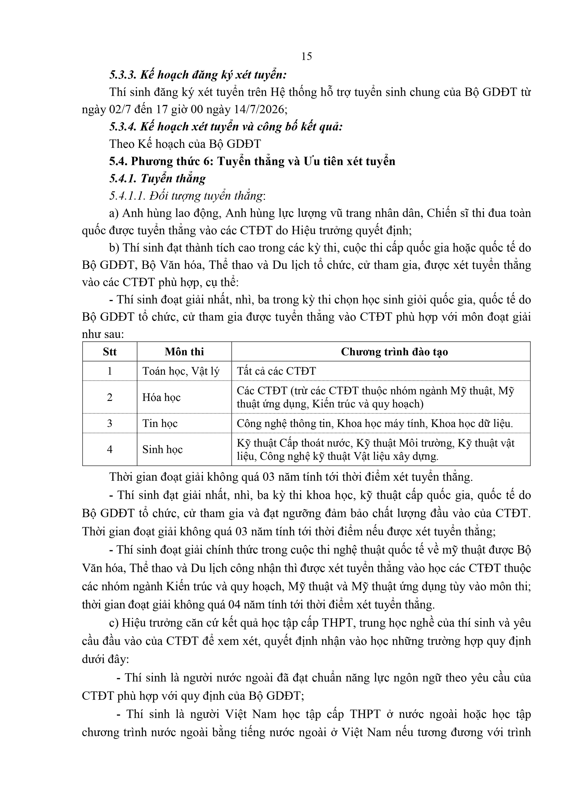 Phương thức tuyển sinh 2026 Trường Đại học Xây dựng