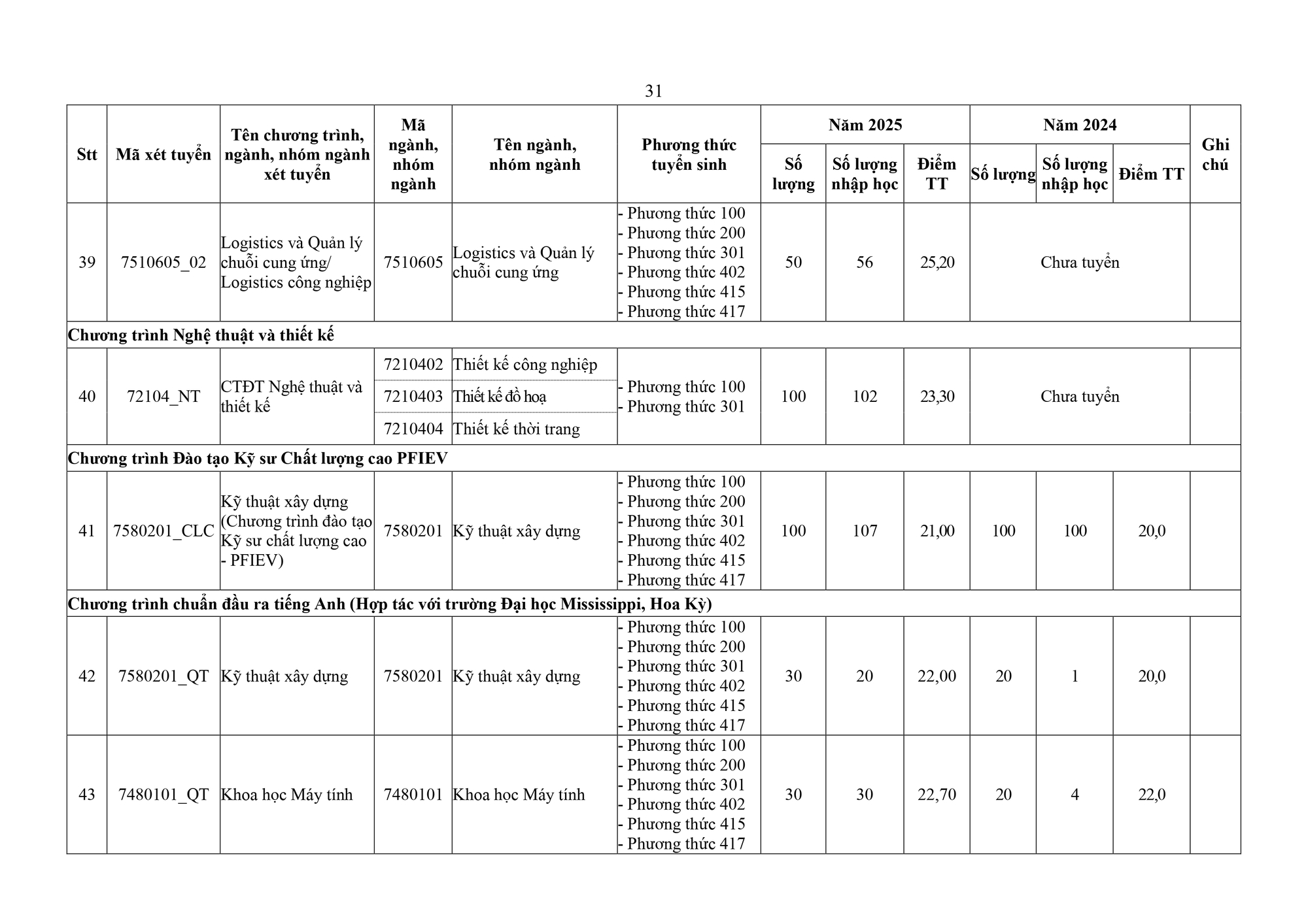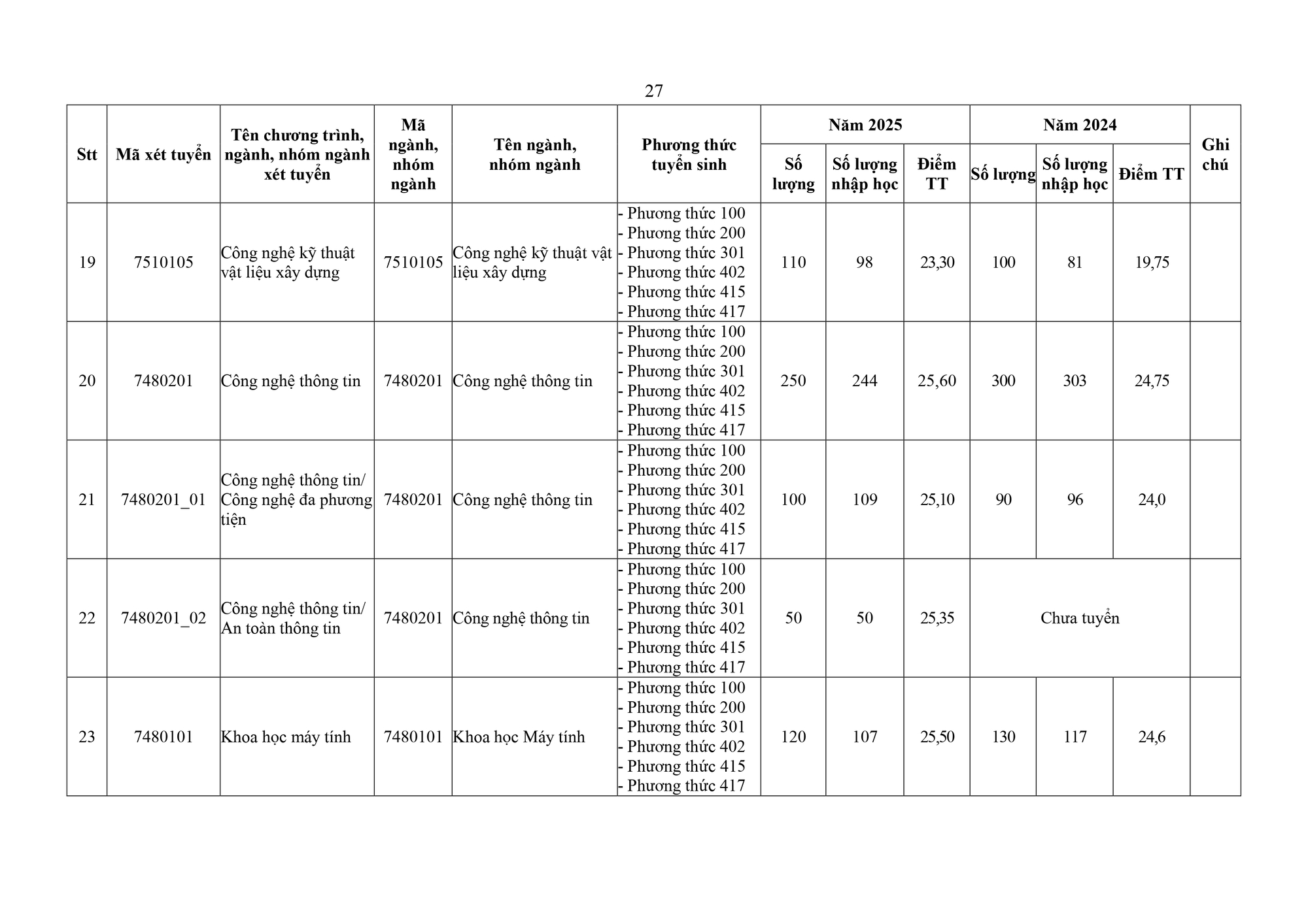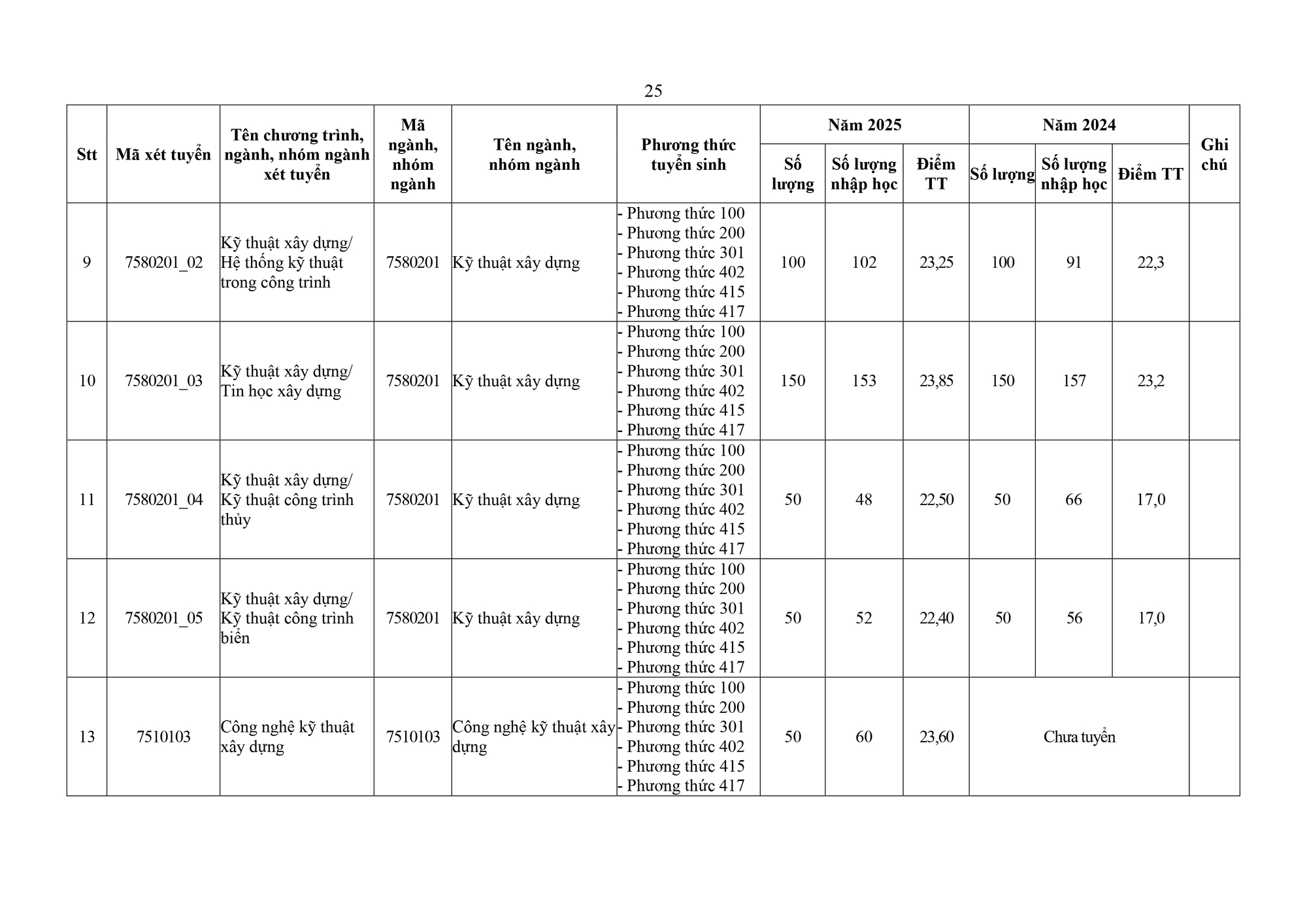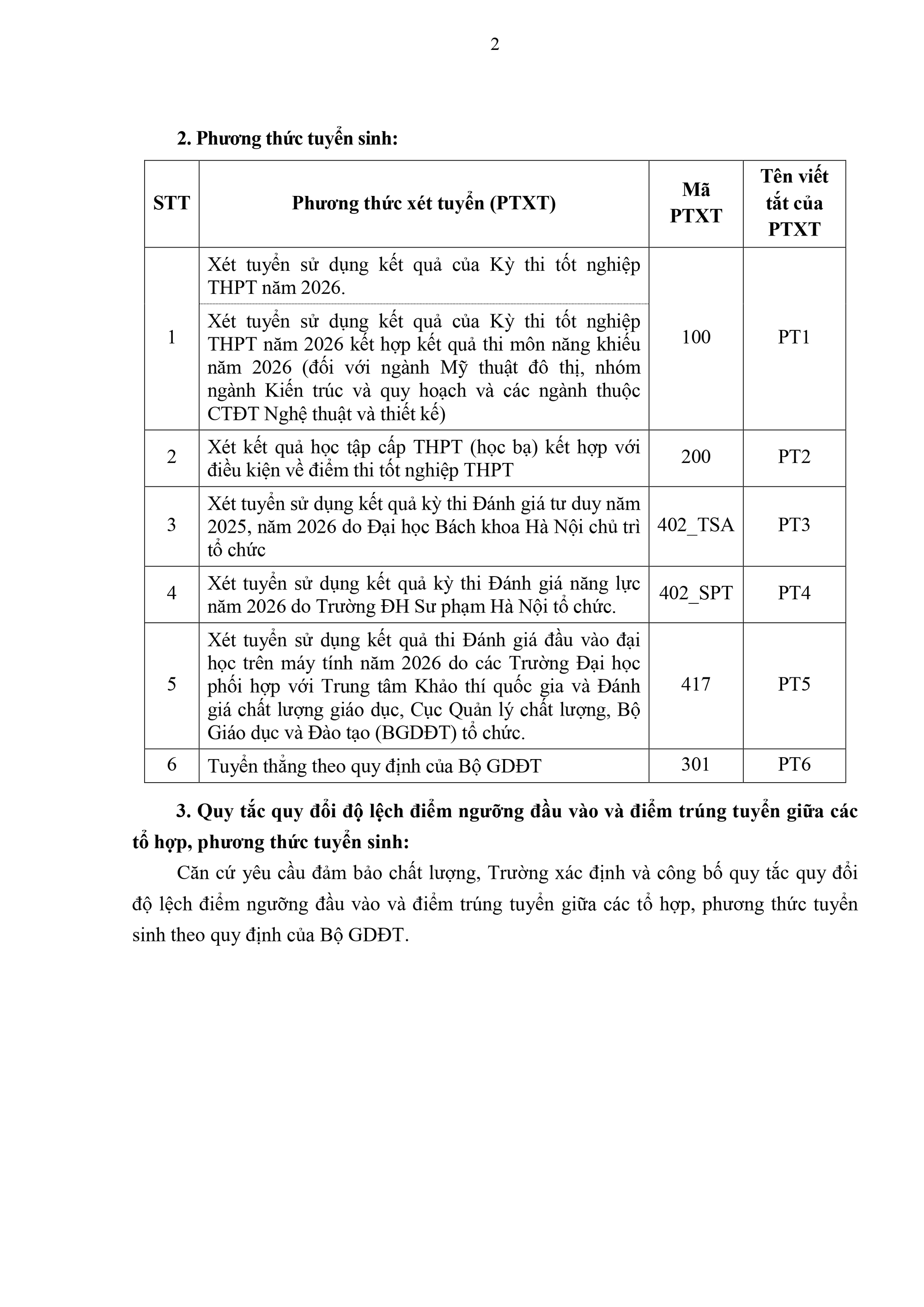 Phương thức tuyển sinh 2026 Trường Đại học Xây dựng