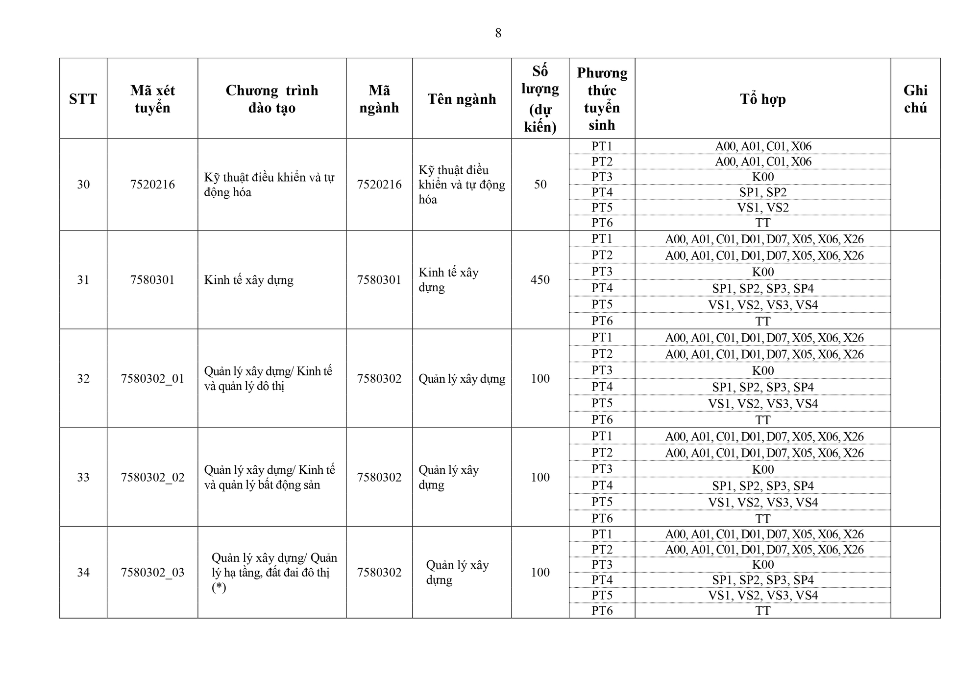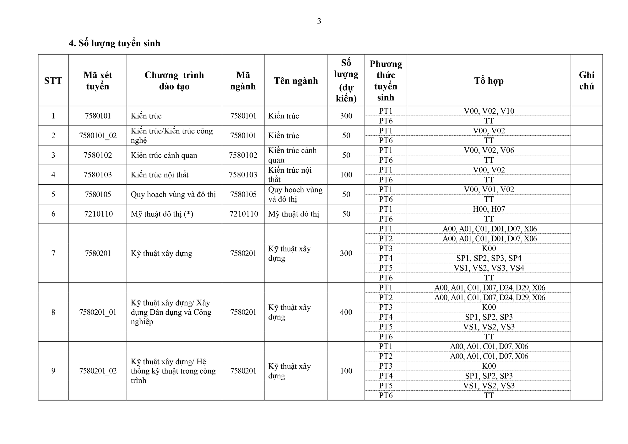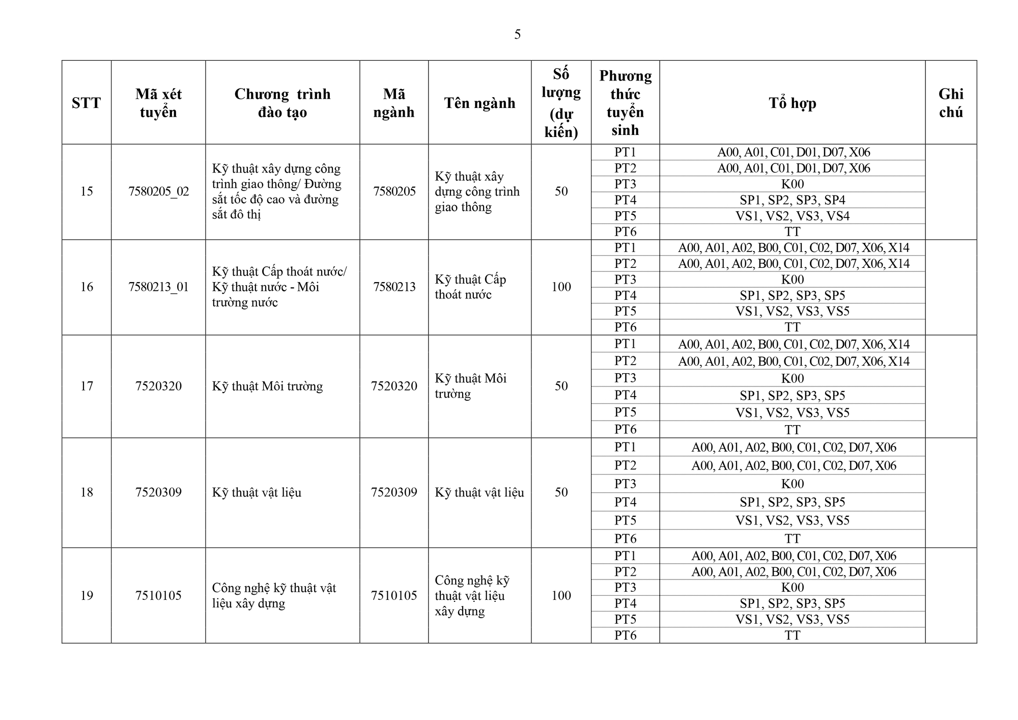 Dự kiến thông tin tuyển sinh 2026 hệ đại học chính quy của Trường Đại học Xây dựng cho thấy có 6 phương thức tuyển sinh. Cụ thể như sau: